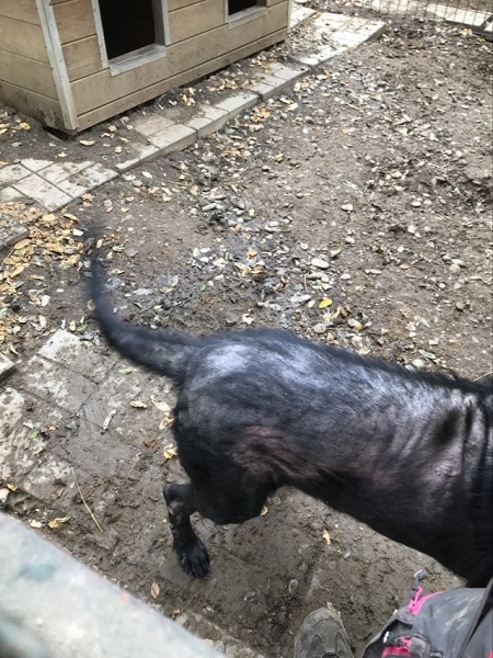 Leider leidet NAEL nun schon seit April an Hautproblemen, diese haben sich so verschlimmert, dass der ganze Rücken bereits kahl ist. Er sollte zeitnah ausreisen, damit sich seine Haut in Ruhe regenerieren kann. Im Shelter bei Kälte und Wind wird es für ihn schwieriger werden.