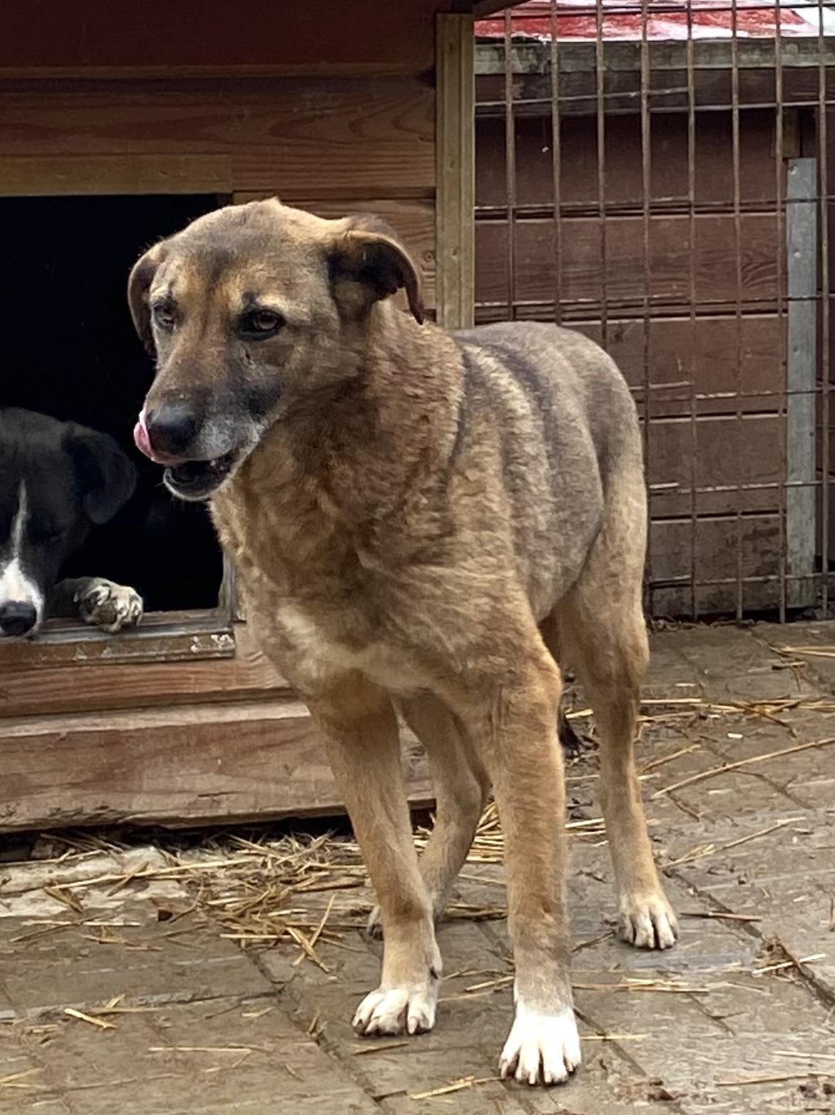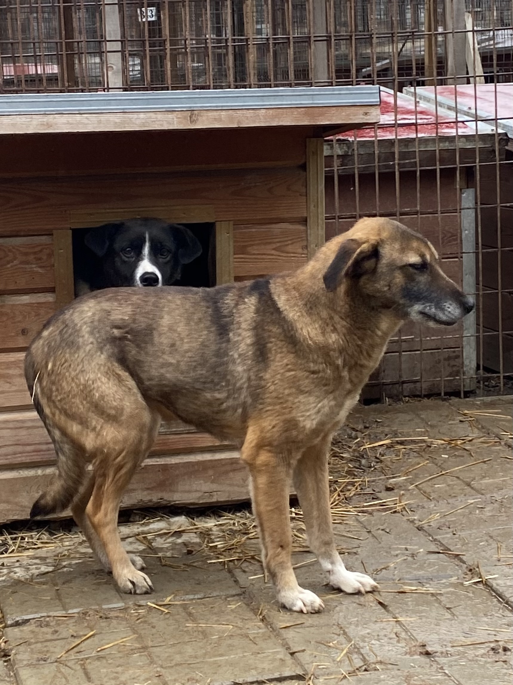 Diese ängstliche Hündin wusste bei unserem Besuch nicht so recht wohin mit sich. Sie scheint mit der Situation im Shelter überfordert zu sein. Sie nahm weder Leckerlies von uns, noch ließ sie sich anfassen. Mit den anderen Hunden vor Ort ist sie verträglich.