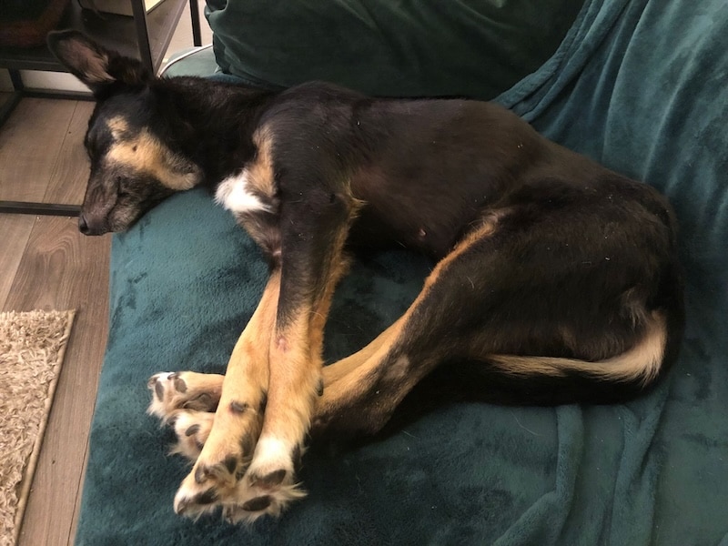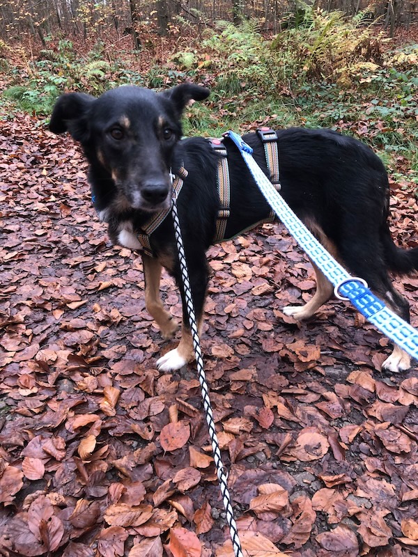 Nalya war vom ersten Tag an stubenrein und läuft total brav an der Leine, begegnet anderen Hunden freundlich und vorsichtig und zeigt schon erste Spielaufforderungen.