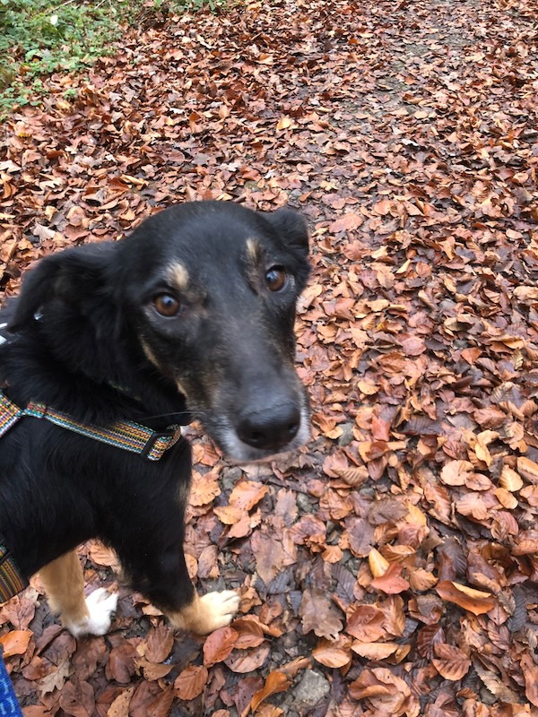 Und sie ist ein kleines Anpassungswunder. Es gibt zwar immer noch vieles, was ihr nicht geheuer ist und sie weicht dann auch sofort aus, auf der anderen Seite lernt sie allerdings auch sehr schnell und Dinge, die gestern noch gruselig waren sind heute schon selbstverständlich. Ihre Neugierde hilft ihr dabei sehr, denn sie möchte sich alles genau ansehen. Auch wenn der Schwanz bis zum Kinn eingeklemmt ist geht sie ganz vorsichtig mit ganz langem Schwanenhals auf die Dinge zu, die sie nicht kennt, um wenigstens mal kurz dran zu riechen. Fremden gegenüber ist sie erstmal zurückhaltend, taut aber schnell auf, wenn sie merkt, man meint es gut mit ihr.
