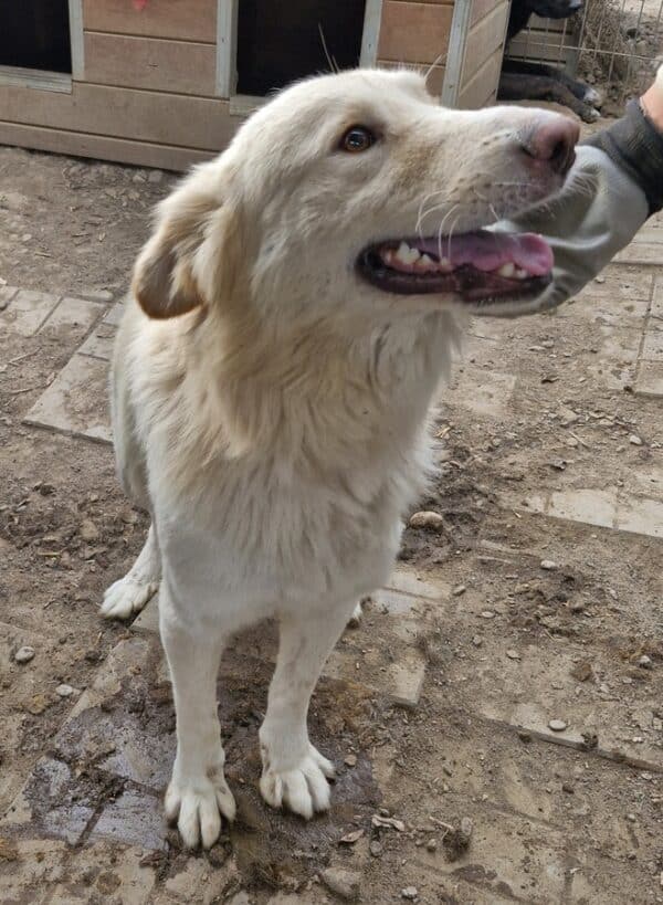 Eine blonde Schönheit in Form dieses bezaubernden Rüden erwartete uns in diesem Kennel. NANDO zeigte sich uns gegenüber absolut neugierig, interessiert und freundlich. Mit seiner etwas verlegenen, aufgedrehten Art schien er seine Unsicherheit etwas überspielen zu wollen. Mit seinem Rüdenkollegen buhlte er um unsere Aufmerksamkeit. NANDO ließ sich gut streicheln und nahm die angebotenen Leckerchen dankbar an. Ein wirklich toller Hund, der den Menschenkontakt sehr zu vermissen scheint.