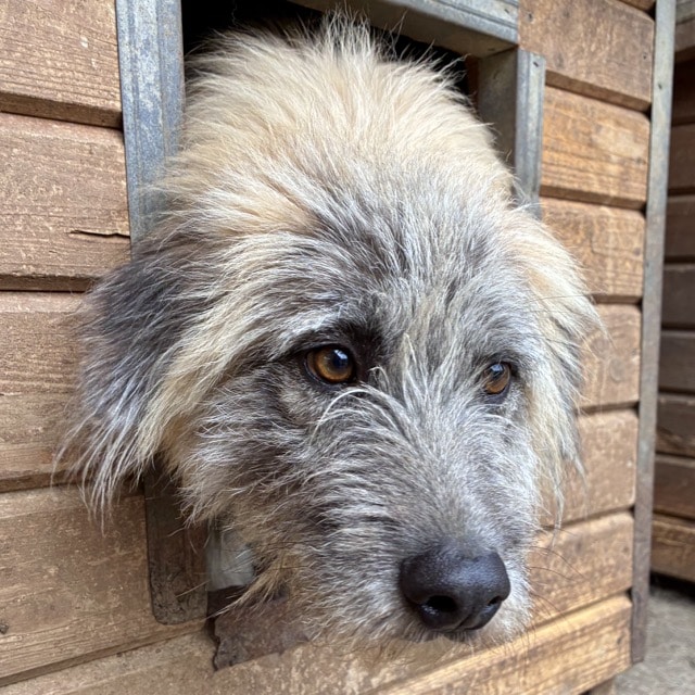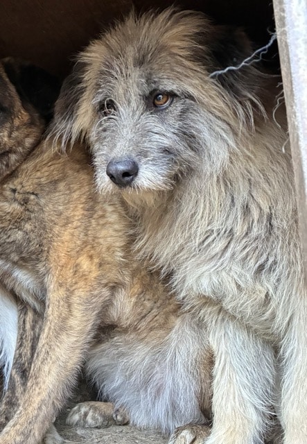 Was für ein trauriges Los unsere hübsche NANGA gezogen hat – 4 lange Jahre wartet diese arme Seele bereits fast ungesehen und chancenlos im Shelter auf das große Glück. Während dieser Zeit gab es kaum Besuch – kein Wunder also, dass NANGA uns weiterhin nicht über den Weg traut. Besorgt schauten uns große, unsichere Äuglein an und es war ihr gar nicht wohl dabei, dass wir mit im ohnehin schon engen Kennel waren. NANGA drängte sich entweder mit den anderen Hunden in die Kennelecke oder verzog sich in die sichere Hütte. Auch die hingeworfenen Leckerlie wurden während unserer Anwesenheit nicht genascht. NANGA scheint bisher leider gar keine oder nur ungute Erfahrungen mit uns Menschen gemacht zu haben. Im Kennel leben mehrere unsichere Hündinnen und Rüden, die alle während unseres Besuchs sehr freundlich und verträglich miteinander umgingen – sich aber leider auch gegenseitig in ihrer Unsicherheit bestärken. Für NANGA suchen wir erfahrene und einfühlsame Menschen, die sie an die Pfote nehmen und an ein Zusammenleben auf der Sonnenseite heranführen. Von einem aufgeschlossenen Ersthund würde sie sehr profitieren – dieser wäre für NANGA ein Muss. Wir hoffen, dass sie nun endlich die schöne Welt außerhalb von Gitterstäben kennenlernen darf.