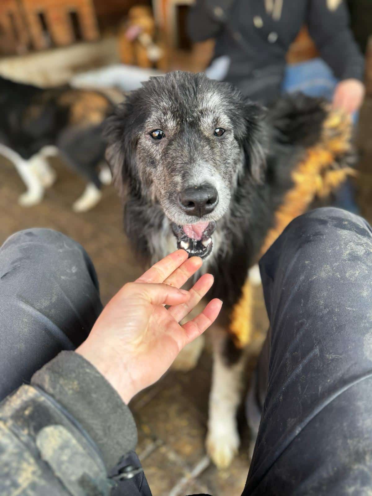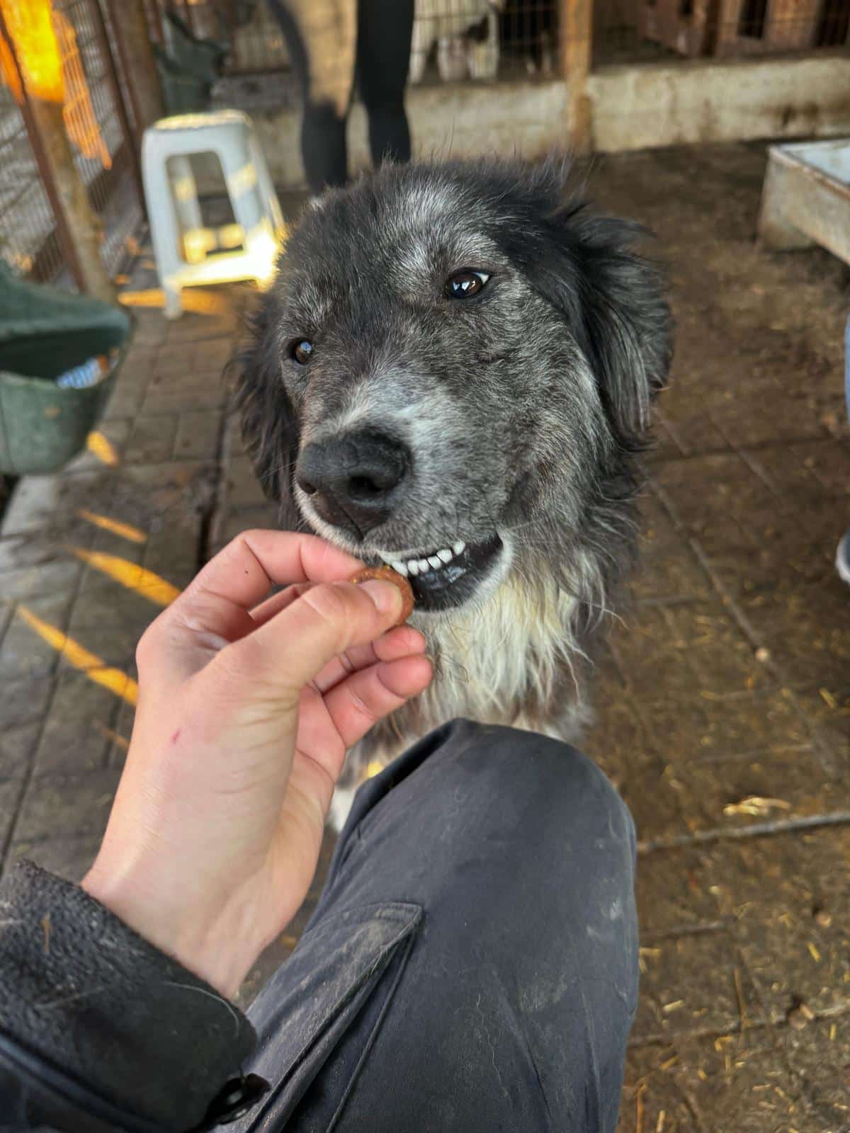 Glücklicherweise ist NARA nicht mehr zu dünn, sie hat sogar eher etwas zu viel auf den Rippen und ihr dickes Fell trägt sein Übriges dazu bei. Leider fiel uns bei diesem Besuch jedoch NARAs unrundes Gangbild auf. Sie bewegt ihre Hinterbeine etwas steif und könnte Hüft- oder Knieprobleme haben… Streitereien unter den Hündinnen konnten wir bei unserem Besuch nicht beobachten und alle schienen verträglich miteinander, doch laut voriger Updates hätte NARA nichts dagegen, Einzelprinzessin zu werden. Wir wünschen ihr von Herzen, dass sie die Chance zur Ausreise bald erhält.