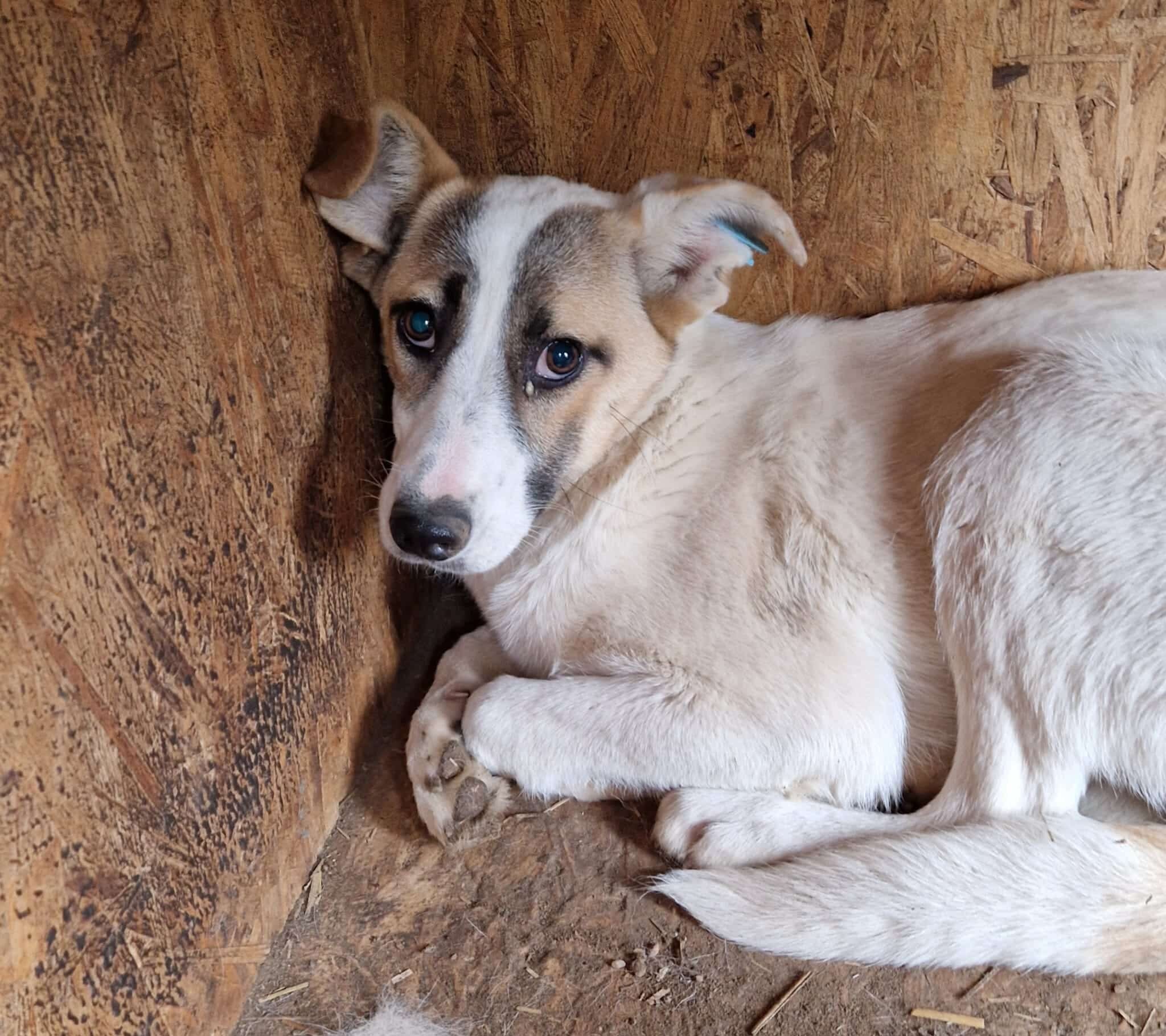 Die noch junge NARDA war bei unserem Besuch noch nicht lange in Bucov und entsprechend noch sehr beeindruckt von der ganzen Situation. Sie lag ausschließlich in der Hütte. Dort konnten wir sie vorsichtig streicheln, sie ist aber schon unsicher und sehr zurückhaltend, sodass sie das nicht genießen konnte. NARDA blieb aber durchweg defensiv und zeigte keinerlei Abwehrverhalten. Sie ist noch jung und bräuchte dringend guten Kontakt bei erfahrenen Menschen, sonst wird sie sich wohl sehr ängstlich entwickeln.