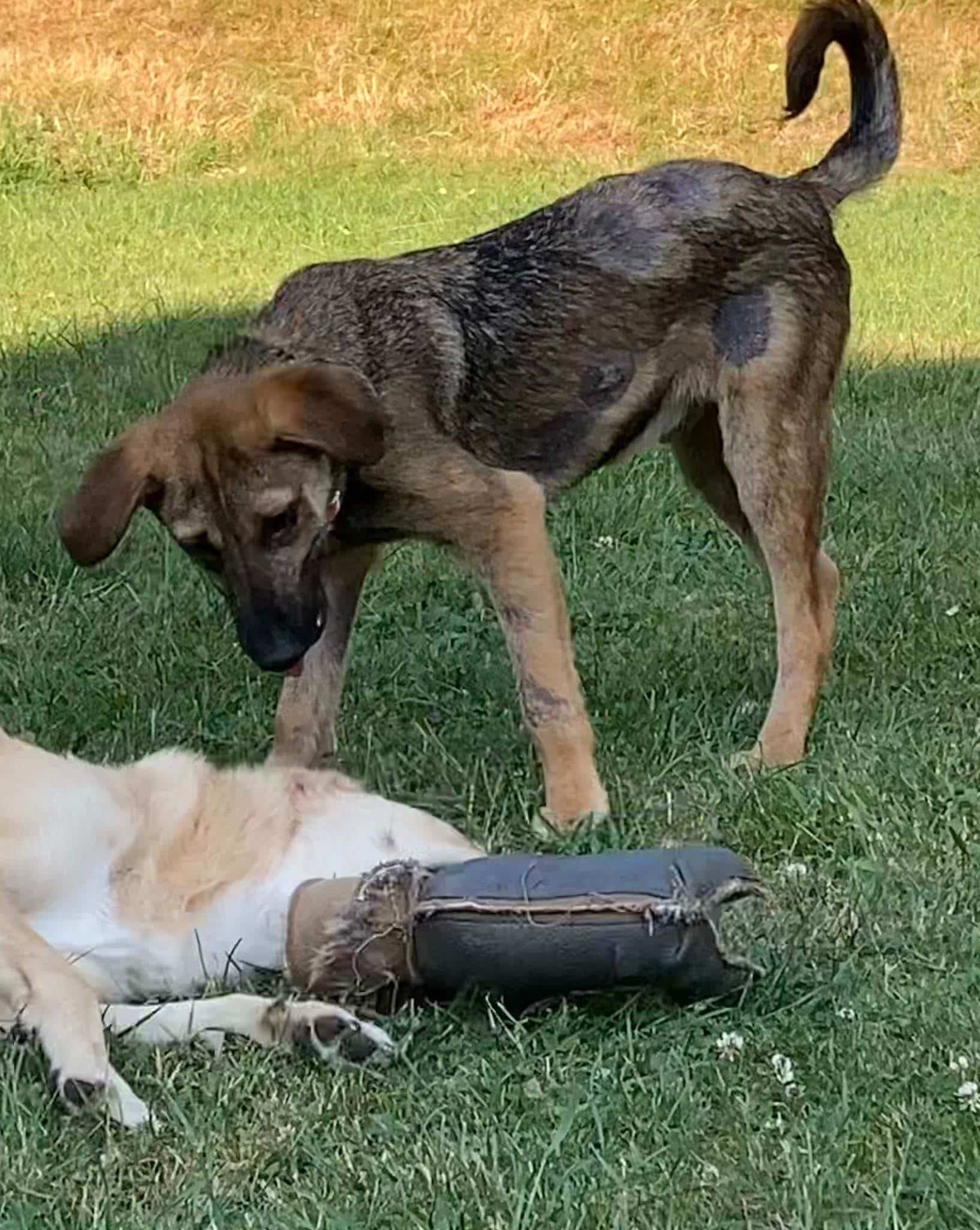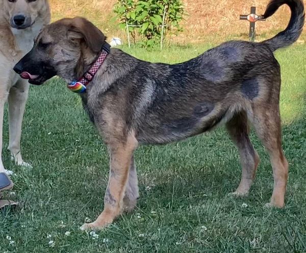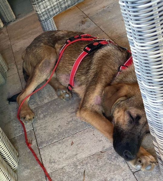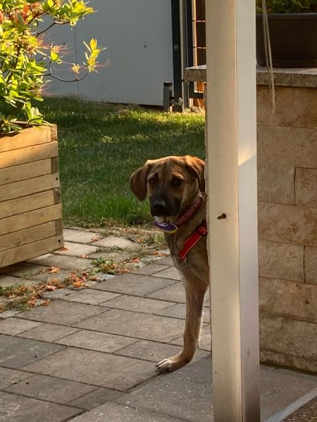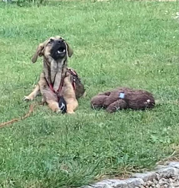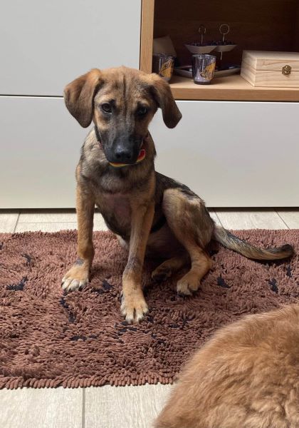 Er liebt es mit meiner großen Hündin durch den Garten zu flitzen oder auch mit dem älteren Rüden zu kuscheln. Alle anderen Hunde, die er kennenlernen durfte, findet er interessant und ist freundlich. Er versteht hündisch super und zeigt sich eher devot, versucht immer alles richtig zu machen und lernt sehr schnell. An der Leine läuft er schon ganz toll und kann im Rudel auch schon kurze Zeit alleine bleiben.