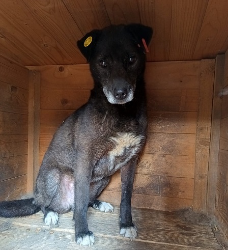 NAVARA ist nun auch schon in die Jahre gekommen. Sie hat aktuell Hautprobleme. In der Hütte kann man sie problemlos anfassen. Sie ist eine ganz liebe Hündin, die sich mit den anderen Hunden im Kennel verträglich zeigt.