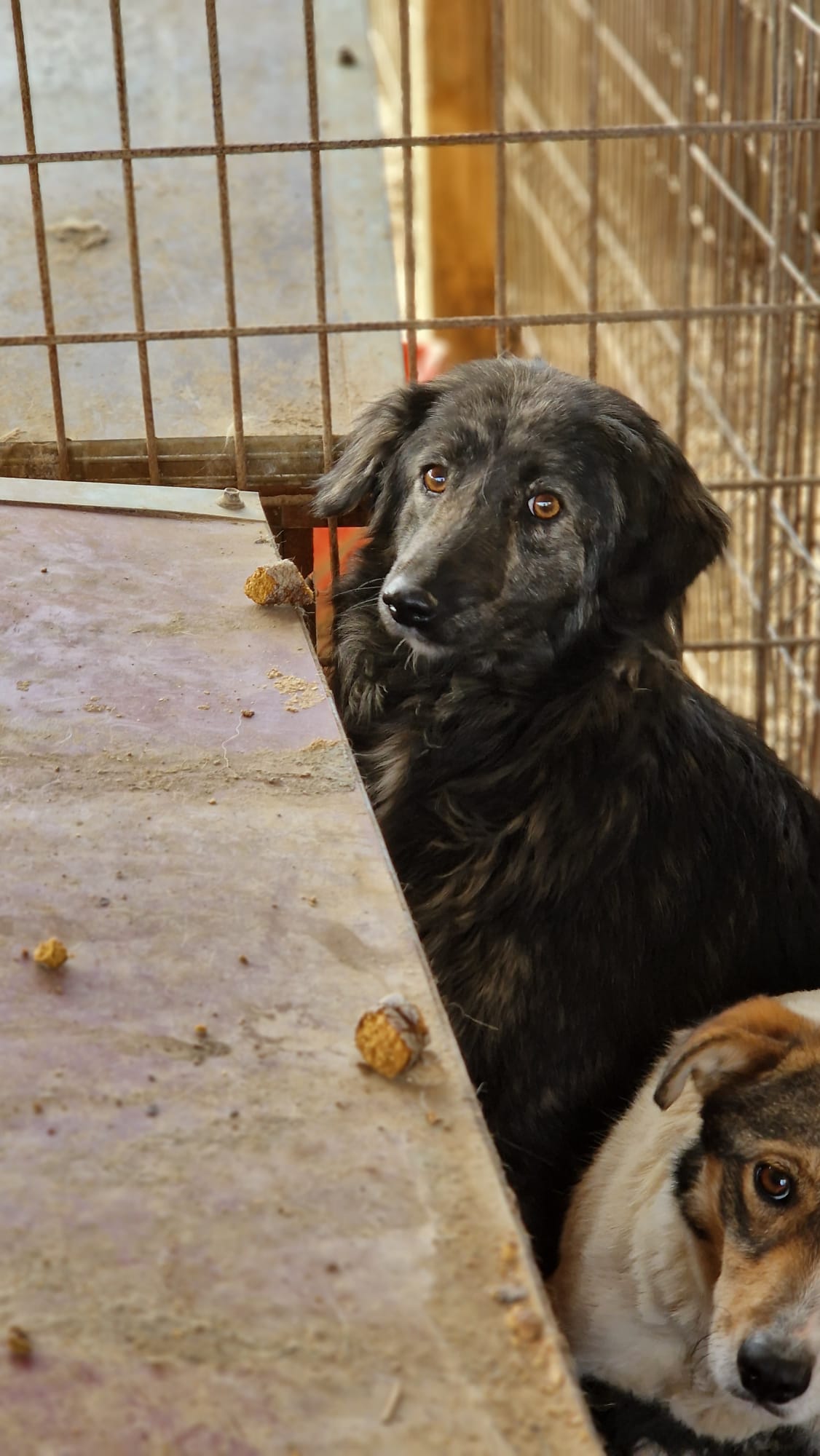 NAVIDAD ist immer noch sehr schüchtern, aber durchaus interessiert. Anfangs neben einer Hütte versteckt, gewann kurz danach die Neugier. Sie kam im Schutz der anderen Hunde hervor, in der Hoffnung ein herumrollendes Leckerli zu erwischen. In einer ruhigen Ecke konnten wir sie gut ansprechen, dabei zeigte sie sich unsicher, aber auch aufmerksam und neugierig. Wir denken, dass die kleine NAVIDAD kaum oder keine positiven Erfahrungen mit Menschen gemacht hat.