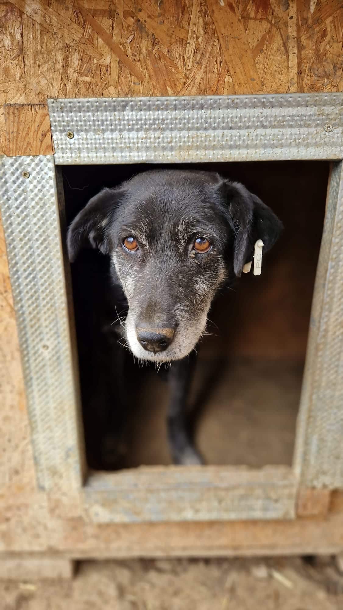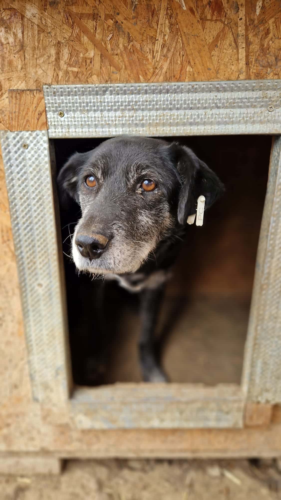 schaute sehr neugierig aus ihrer Hütte, als wir im Kennel standen