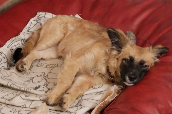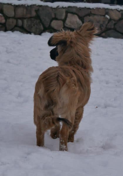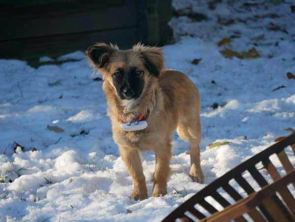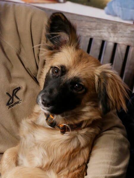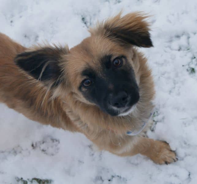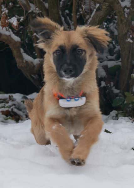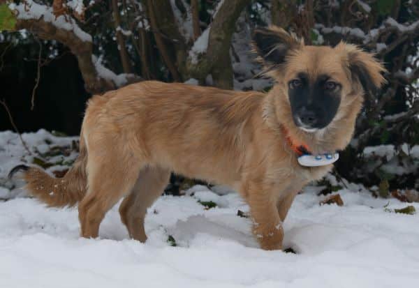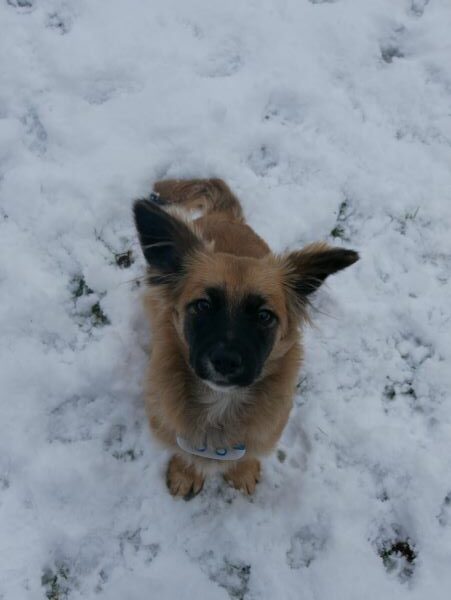 Weiches Flauschfell in hellbraun, dunkler Fang, ein Steh- und ein Knicköhrchen, die Rute lang mit leichtem Schwung nach oben, so kommt die entzückende kleine Welpin daher und schenkt einem einen tiefen Blick aus ihren großen dunklen Augen.