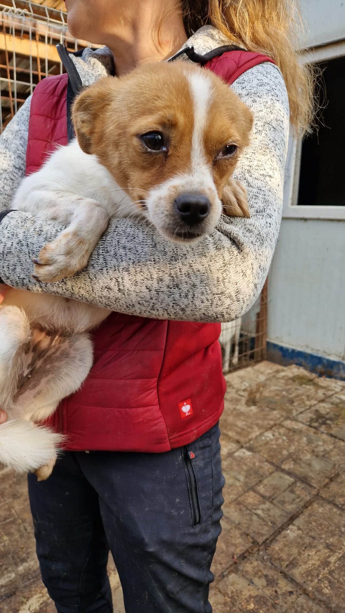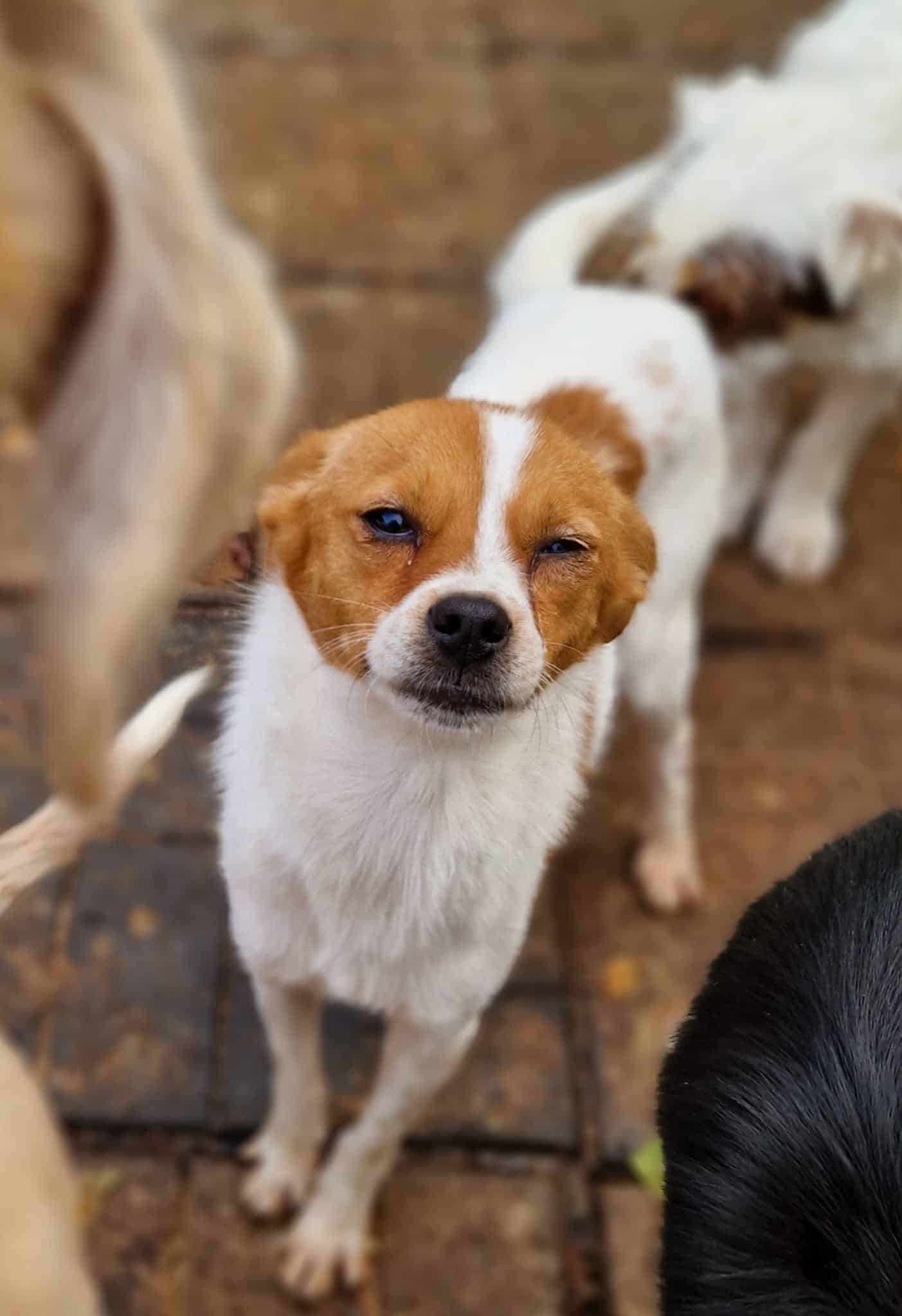 NEILA sitzt mit sehr vielen Welpen in einem Kennel und ist jetzt schon fast die Kleinste. Sie versucht, nicht unter die „Räder“ zu kommen, aber gut geht es ihr nicht. Sie ist zu dünn und hat evtl. auch eine kleine Entzündung im Auge, da sie es immer wieder zukniff. Sie traute sich anfangs nicht so richtig zu uns, aber das liegt an der Masse an Hunden, an denen sie hätte vorbeikommen müssen. NEILA ließ sich problemlos auf den Arm nehmen und streicheln. Wir sind uns sicher, dass sie in einer anderen Umgebung sehr schnell auftauen wird.
