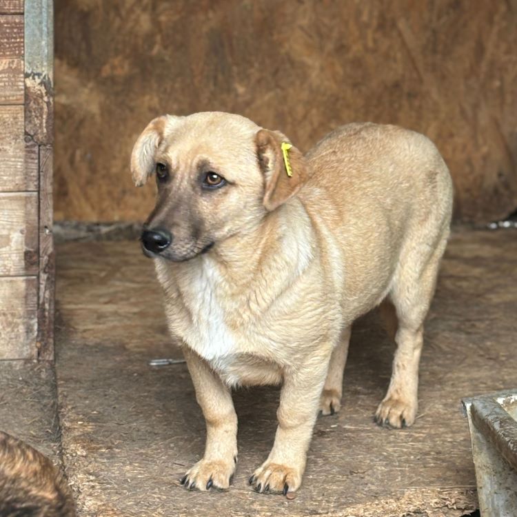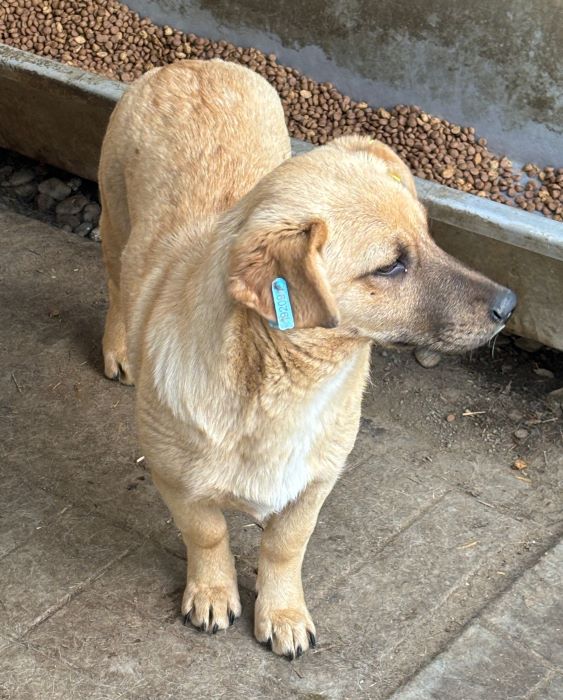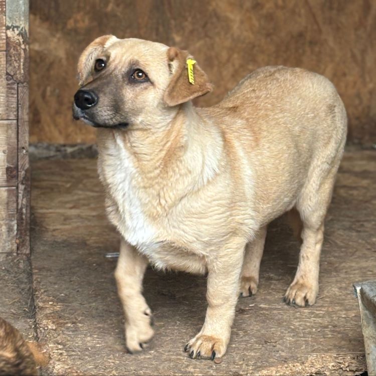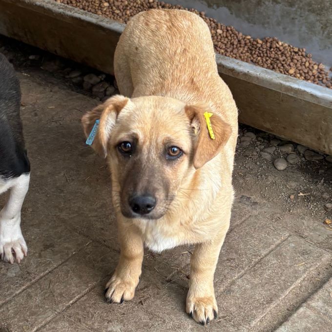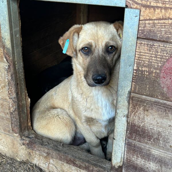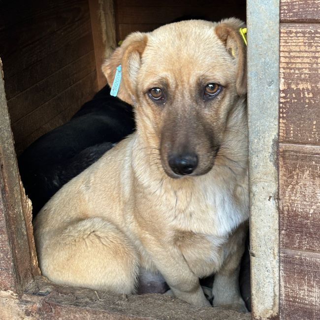 Diese winzige Hündin hielt sich während unseres Besuchs zunächst in der sicheren Hütte auf und beobachtete das Geschehen aus dieser sicheren Entfernung. Später wurde NELI mutiger, nahm im Schutz anderer Hunde sogar Leckerlie aus unseren Händen und blieb neugierig in unserer Nähe. Anschließend konnten wir sie in der Hütte vorsichtig berühren, wobei sie leider nicht zur Ruhe kommen konnte und sich am liebsten in Luft aufgelöst hätte. Diese Zuwendung kann NELI noch nicht genießen – zu neu und ungewohnt ist intensive Nähe für sie. Wir suchen daher einen erfahrenen Platz bei liebevollen Menschen, wo sie in ihrem Tempo ankommen und auftauen darf.