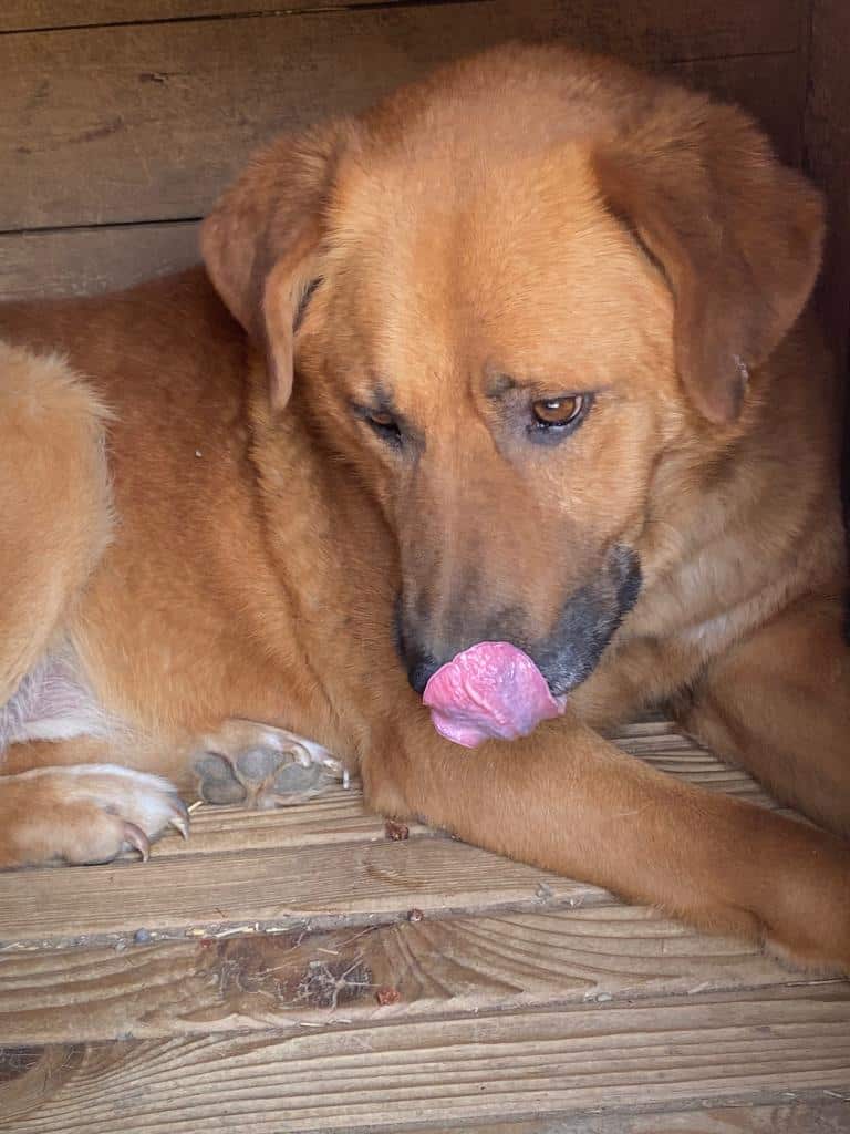 Laut der zuständigen Tierärztin sitzt NEPOMUK schon um die 8 Jahre in Bucov. Nach wie vor wirkt er müde und resigniert. Auch ist er weiterhin schüchtern, läßt sich aber mit etwas Zeit in seiner Hütte anfassen.