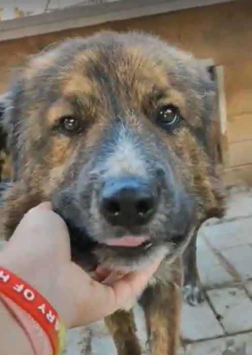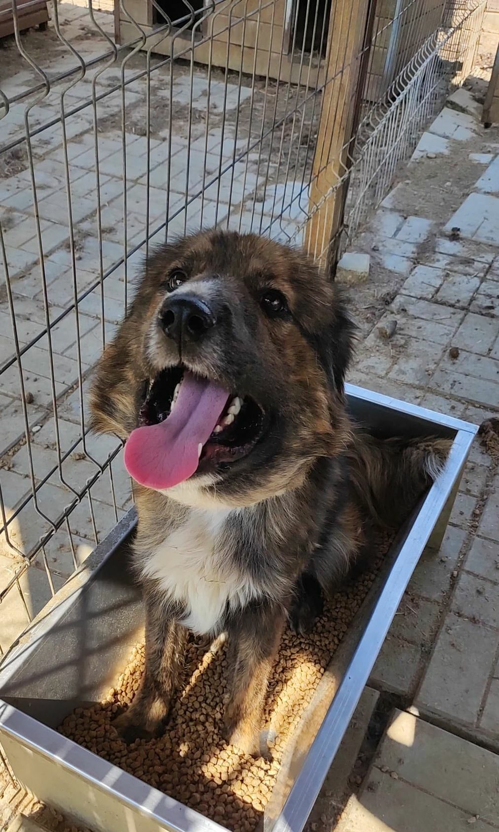 Der wunderschöne große Rüde sitzt inzwischen in einem Außenkennel und ist recht gestresst von den anderen Hunden. Er zeigt sich aber als absolut netter Kerl, der sich gerne streicheln lässt und sich über Aufmerksamkeit freut..