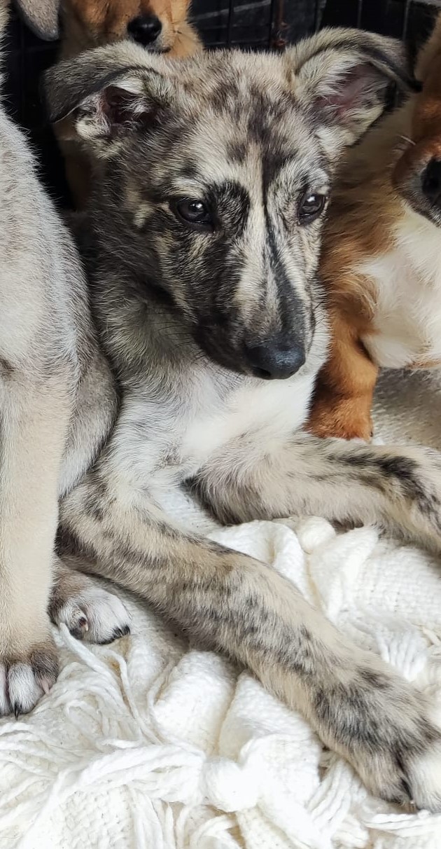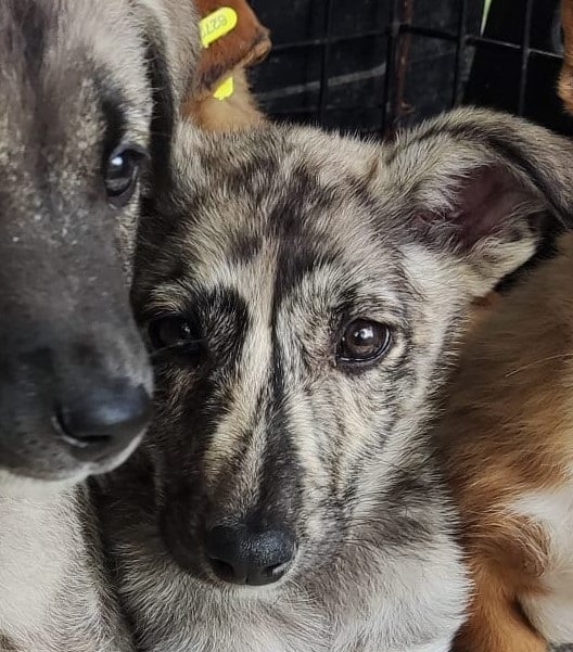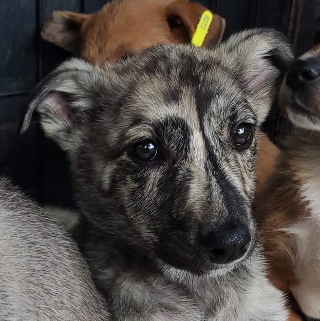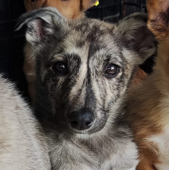 Das hübsche Mädchen schaute sich ganz genau an, was wir machten. Sie war nicht ängstlich, sondern eher überlegend, ob sich das für sich auch lohnen würde. Tat es, und sie war etwas traurig, als wir wieder gehen mussten. Auch für sie wäre es sehr schön, sie könnte zeitnah rauskommen und ihre Kindheit so genießen können, wie es sich für Welpen gehört.