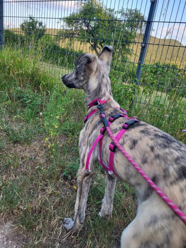 Nessa ist als klitzekleine Welpin mit ihrer Schwester Felicitas und zwei weiteren noch kleineren Welpen im Sanctuary gelandet und hat dort die ersten Wochen ihres Lebens verbracht. Alle vier hatten das Glück, jetzt auf Pflegestellen ausreisen zu können. Nessa ist eine wunderschöne gestromte Hündin die anfangs fremden Menschen gegenüber vorsichtig ist, aber sehr schnell auftaut. Sie lebt bei uns im gemischten Rudel mit verschiedenen Alter und Größen, mit allem kommt sie super zurecht. Sie spielt gerne mit ihren Hundefreunden nimmt aber auch ihr Spielzeug und beschäftigt sich selber. Im Haus ist Nessa eine eher ruhige Maus, die kaum auffällt.