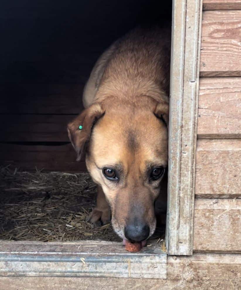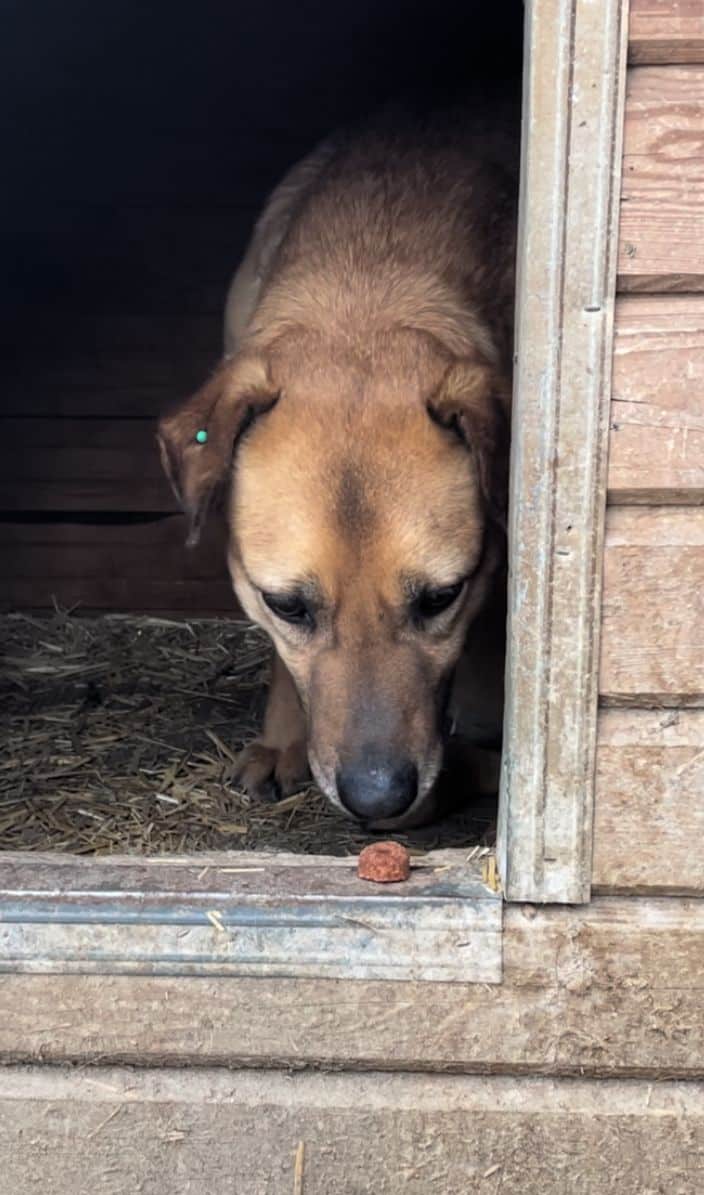 NESTOR ist uns Menschen gegenüber unsicher, er beobachtete uns zunächst aus der Entfernung, ob wir ihm denn etwas schlechtes wollen. Im Zwinger selber wich er vor uns zurück, in der geschützten Hütte nahm er aber schon vorsichtig die Leckerchen vom Hüttenrand. Anfassbar ist NESTOR aber noch nicht. Da er sich gut mit anderen Hunden versteht, ist ein souveräner Ersthund im neuen Zuhause hilfreich, um NESTOR die Eingewöhnung zu erleichtern.