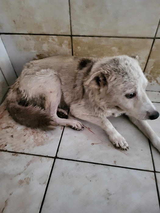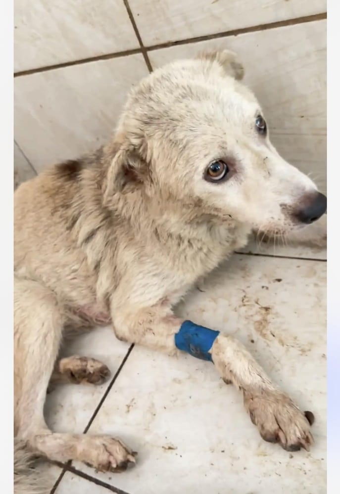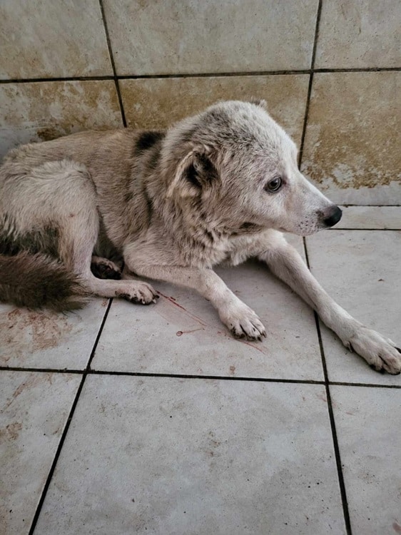 Wir suchen nach Behandlung dringend einen Platz für die ältere Hündin.