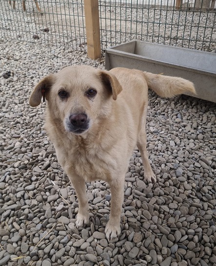 NEVIN ist ein ganz lieber, aber sehr zurückhaltender Rüde. Das Leben hat ihn bereits geprägt. Vor allem bei uns Menschen. Daher stand er auch erst einmal nur beobachtend an seiner Hütte. Doch nach einer Weile kam er zögerlich auf uns zu und nahm ganz vorsichtig die Leckerchen aus der Hand, aber bei unseren Berührungen am Körper erstarrte er regelrecht.