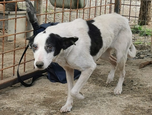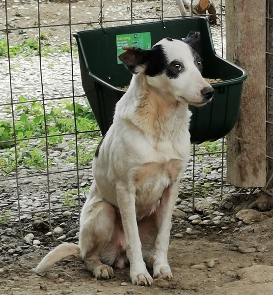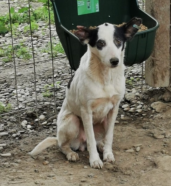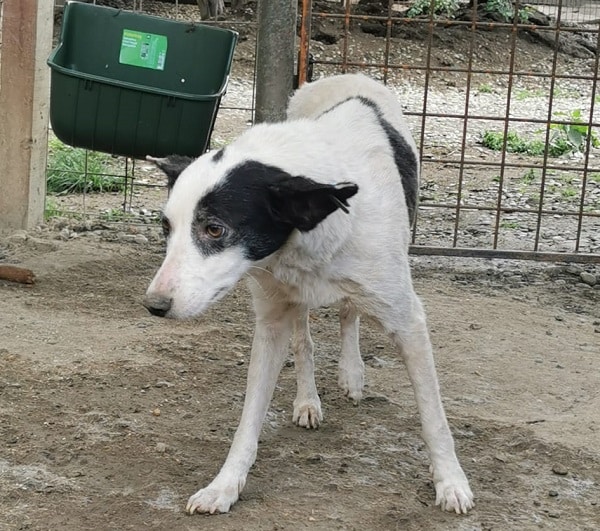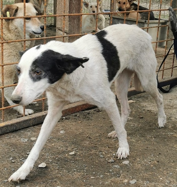 Dieses arme Hundemädchen wurde erst gestern mit ihrem Kennelkollegen zusammengesetzt und zeigte sich verständlicherweise noch ganz beeindruckt. Auch die lauten, stressigen Umgebung macht das alles im Zusammenhang nicht besser. Die schüchterne Hündin zitterte in der Hütte, als wir uns ihr näherten. Unter Bedrängung war sie dann aber trotzdem anfassbar, zu mehr war die arme Maus leider vorerst noch nicht bereit. Als besonderes Merkmal war erkennbar, dass ein Stück ihres rechten Ohres fehlte – ein Zeichen dafür, dass die Hündin vermutlich bereits so einiges durchleben musste. Zeit, dass sie die schöne Seite des Lebens endlich erfahren darf – hilfst du ihr dabei?