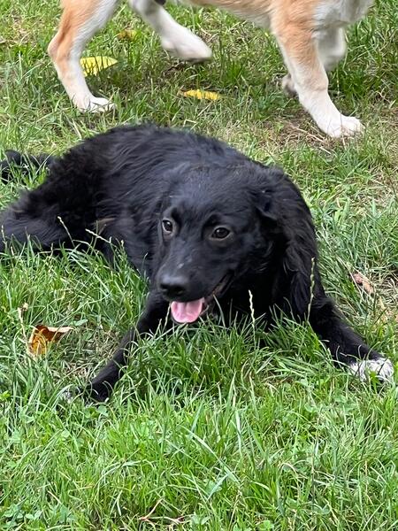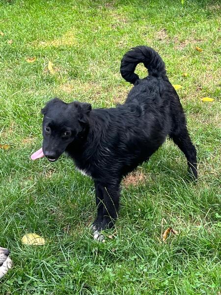 Fast schwarz wie die Nacht, aber mit einem Herzen aus Gold, das bin ich der kleine Nevis. Ich bin vor einer Woche dem rumänischen Shelter entkommen und bin nun auf einer Pflegestelle. Ich lebe hier in einem bunt gemischten Rudel und liebe sie alle, egal ob jung oder alt, groß oder klein, ich harmoniere mit allen sehr gut. Ich genieße es zu Toben und zu spielen, komme aber sehr gut von alleine zur Ruhe und überdrehe nicht. Nachts schlafe ich durch. Wenn man sich an den typischen Welpen Zeiten orientiert, bin ich bereits stubenrein. Ich liebe es zu kuscheln und bin sehr menschenbezogen, sobald ich den Menschen kenne.