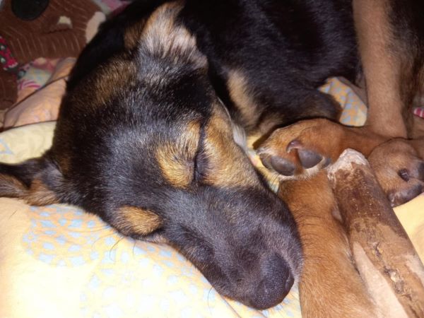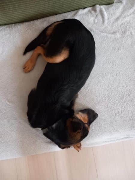 Mit den anderen Hunden des Haushaltes kommt sie zurecht, lässt sich aber nicht die Butter vom Brot nehmen. Mit den anderen Hunden bleibt sie problemlos bis zu 3 Stunden alleine.