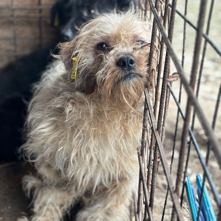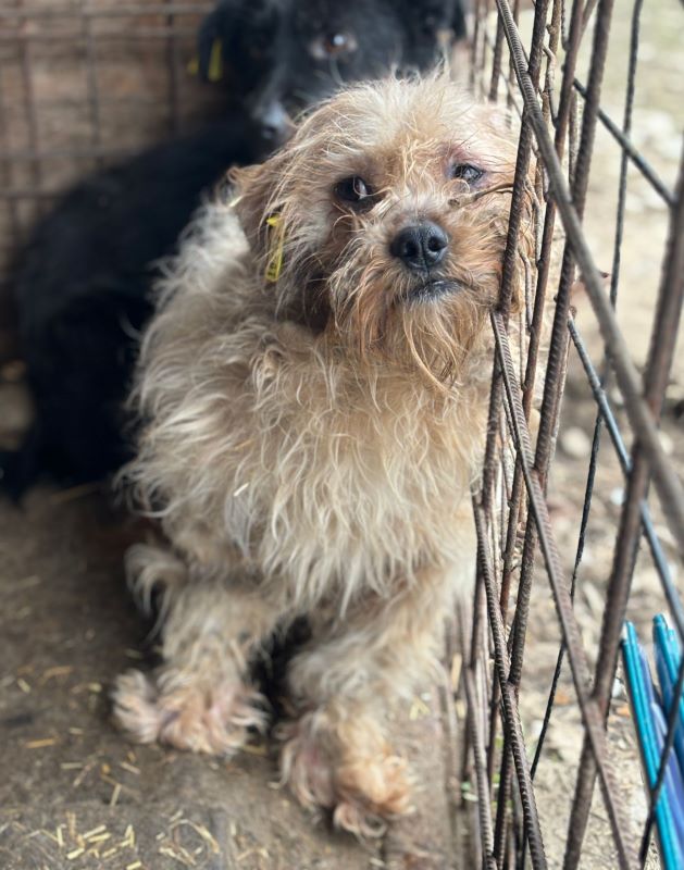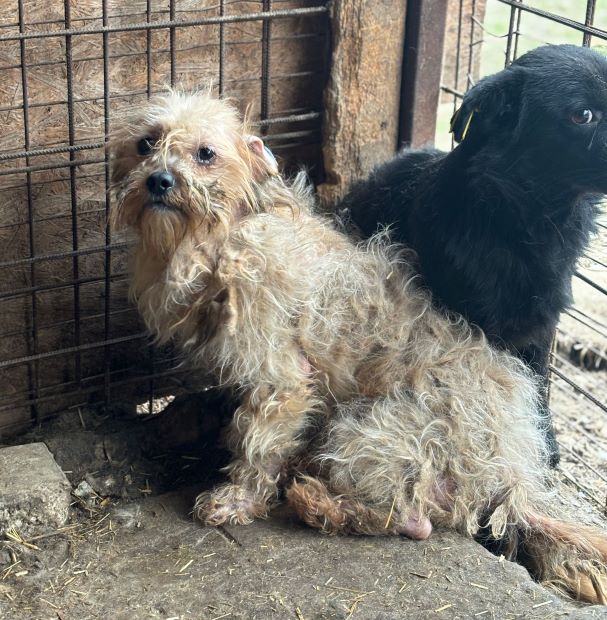 Dieses winzige Hündlein lag während unseres Besuchs zunächst ausschließlich in der Hütte. Total verfilzt, viel zu dünn und am ganzen Leib vor Angst zitternd fanden wir es vor. Das große Shelter ist absolut der falsche Ort für so eine zarte, geschundene Hundeseele. Was mag NICCI nur widerfahren sein, dass sie sich so vor uns Menschen fürchtet…? Auf Kontaktaufnahmen reagierte sie mit Knurren und Schnappen, sodass wir sie nicht weiter bedrängen und stressen wollten.