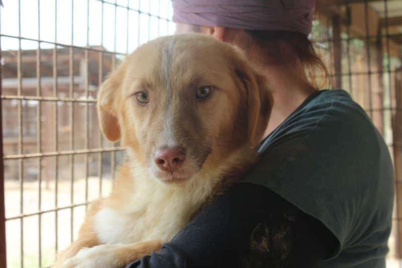Anfangs war Nicolao noch etwas zurückhaltend und schüchtern. Nach kurzer Zeit taute er auf und lies sich gerne auf den Arm nehmen und kraulen. Nicolaor blieb ganz ruhig auf dem Arm liegen und hat die Streicheleinheiten und Nähe sichtlich genossen.