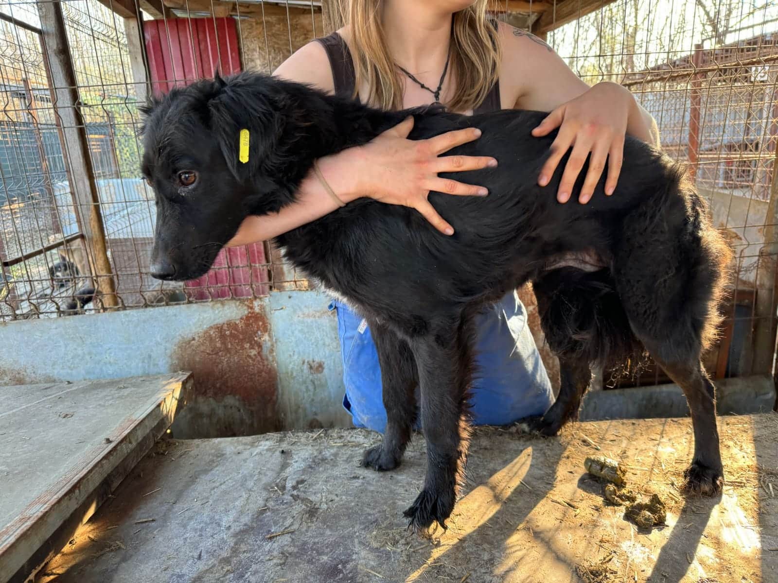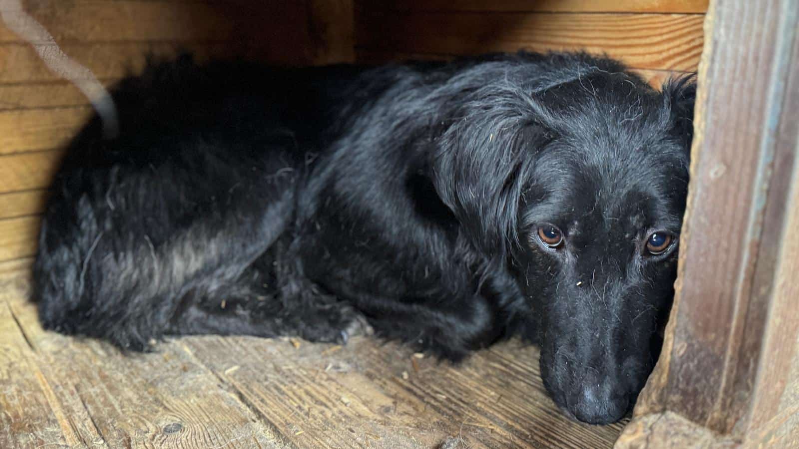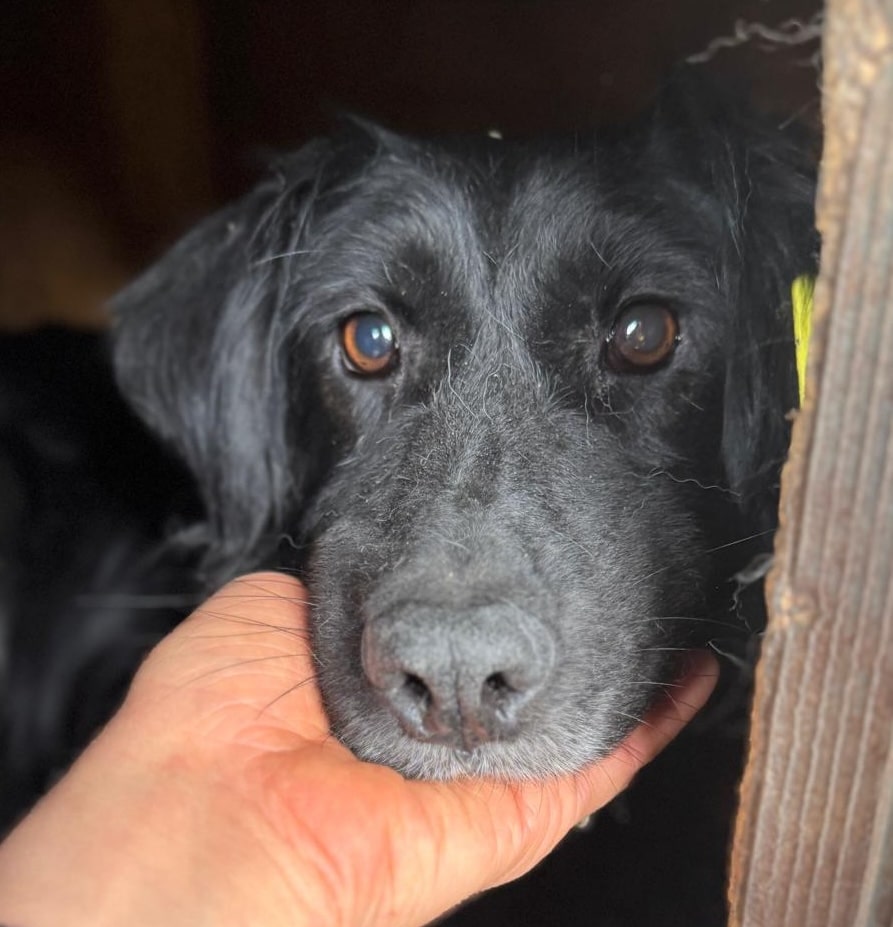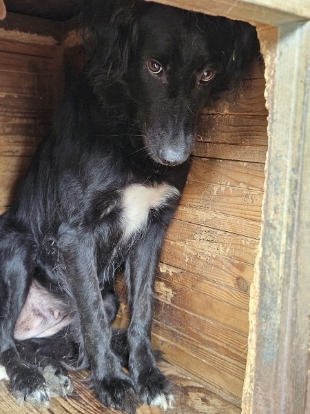 NICOLETTA versteckte sich während unseres Besuchs in der Hütte. Als wir uns ihr zuwandten, konnten wir sie unter Bedrängung anfassen und sie blieb dabei stets devot. Wahrscheinlich hat sie Streicheleinheiten noch nie kennengelernt. Hier braucht es erfahrene Menschen im Umgang mit unsicheren Hunden. Ein netter Ersthund ist ein Muss und würde ihr bei der Eingewöhnung sicher helfen.