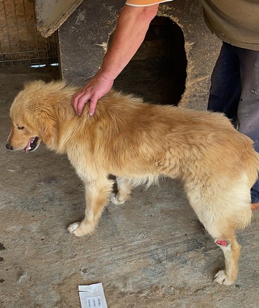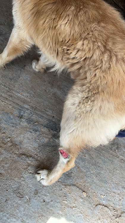 Rüde geb. ca. 2012 Größe: ca. 50cm offene Wunde/ Tumor am linken Hinterbein