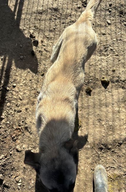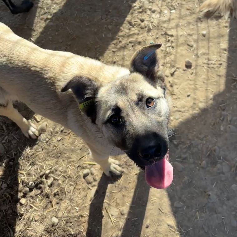 Diese junge, zarte Hündin zeigte sich bei unserem Besuch von der ersten Sekunde an sehr offen und neugierig. Freundlich begrüßte NILLA uns und genoss die seltene Aufmerksamkeit. Gern ließ sie sich überall streicheln und nahm dankbar die mitgebrachten Leckerlie von uns. Am Hinterbein fehlt dieser wunderschönen Hündin leider etwas Fell – dies scheint eine alte Verletzung zu sein, die gut verheilt ist. In unserer Anwesenheit machte NILLA den anderen Hunden ein paar Ansagen und verteidigte ihr Futter. Dieser Kennel wurde in der Woche unseres Besuchs frisch zusammen gesetzt – die Rangordnungen müssen sich erst noch bilden und ganz natürlich gibt es Hunde, die sich von Anfang an nicht unterkriegen lassen – denn im Shelter gilt es, zu überleben. Wir schätzen NILLA dennoch als verträglich ein, denn generell war sie im Umgang mit den anderen Hunden freundlich.