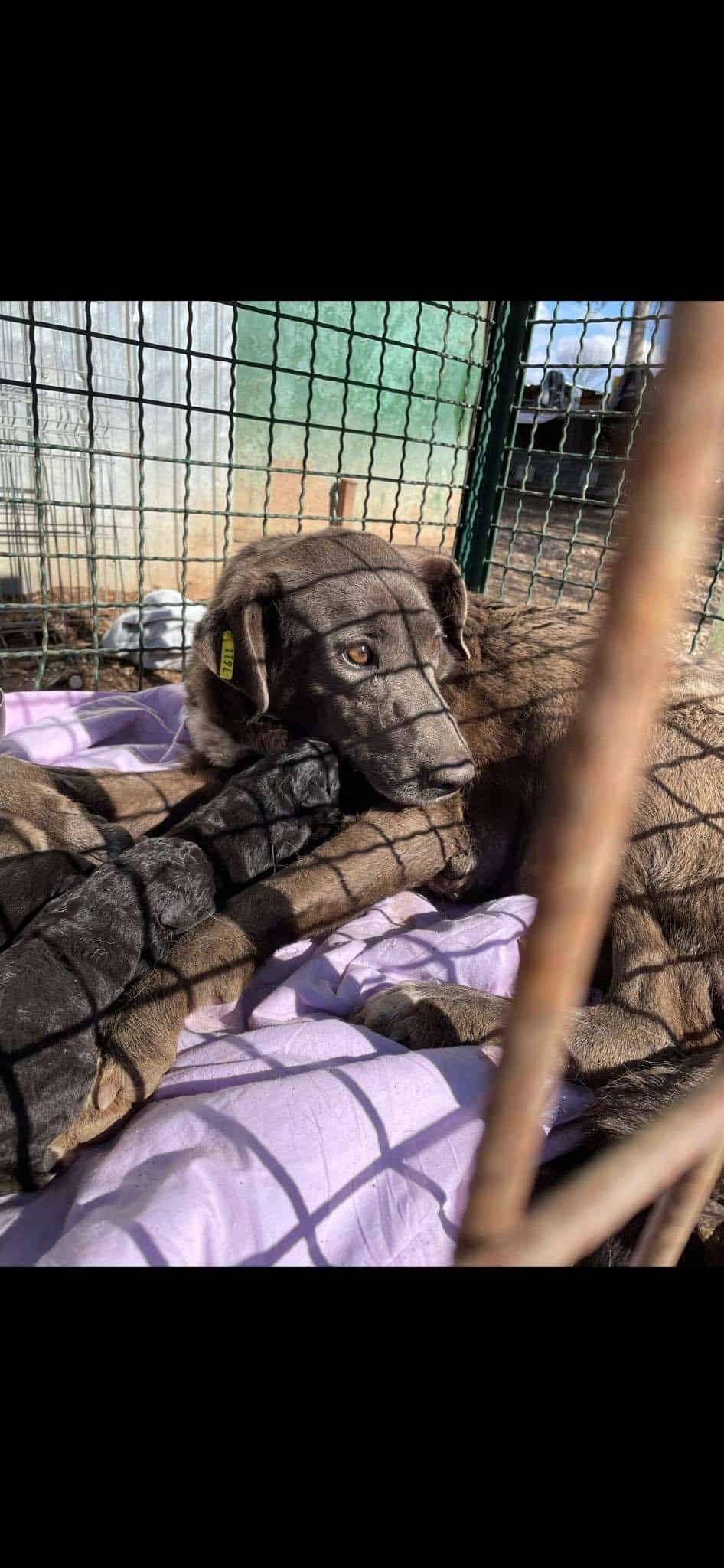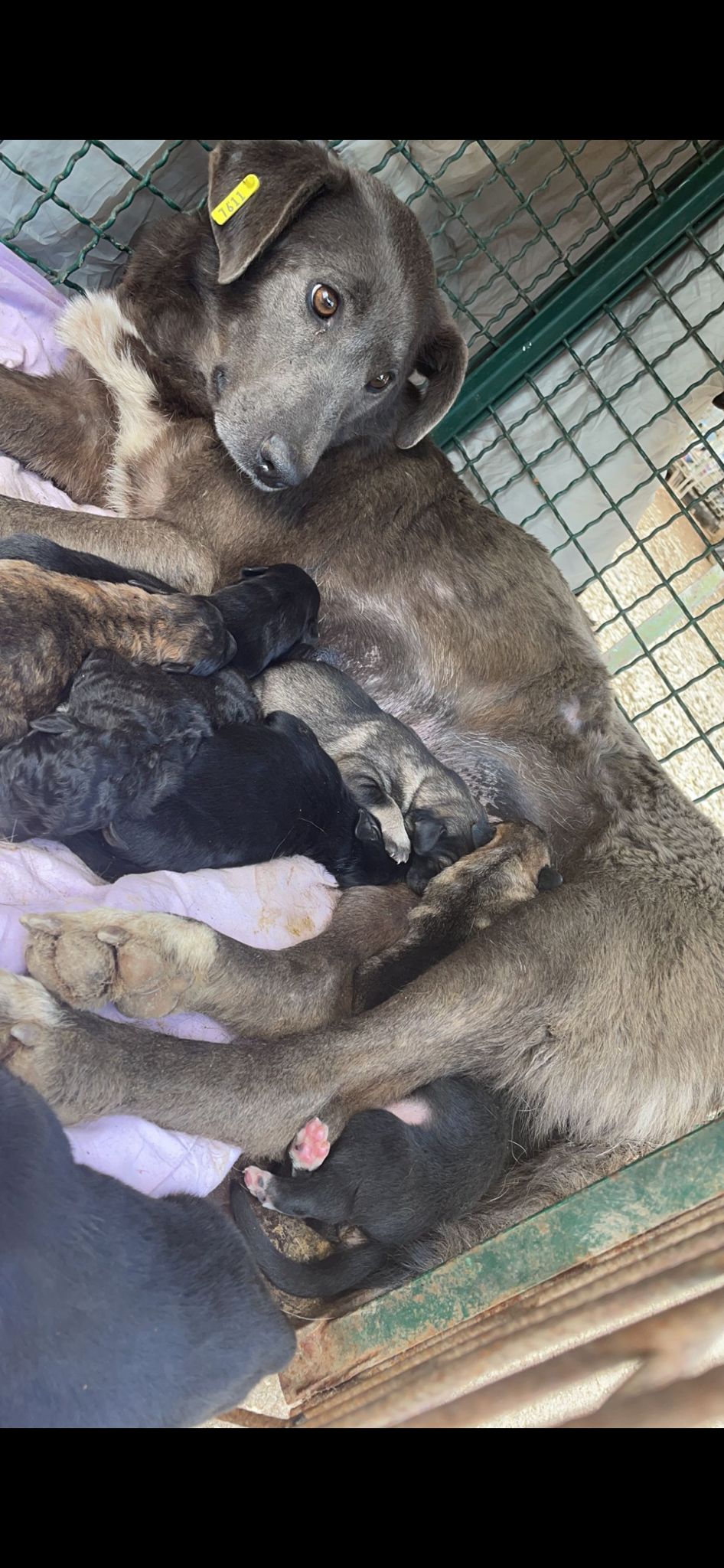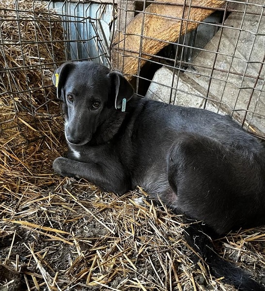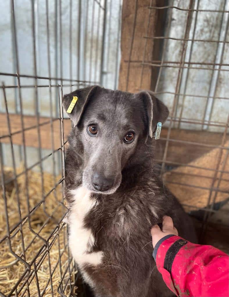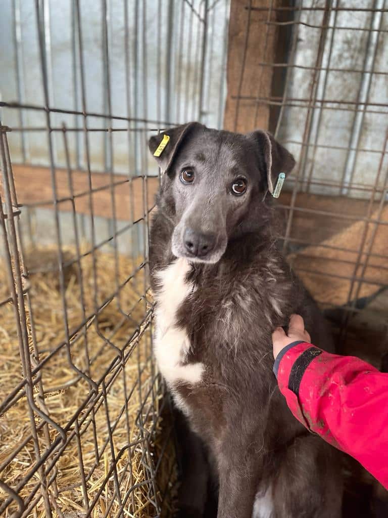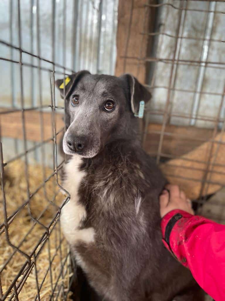 Die Mama von 5 Welpen lebt aktuell noch mit 3 Jungs in einem Kennel zusammen. Bei unserem Besuch blieb sie solange in der Hütte, bis wir sie bzgl. Anfassen bedrängten. Dann ging sie raus. Das Anfassen ließ sie geschehen, aber es war ihr nicht geheuer. Sie bleibt defensiv. Mit ausreichender Erfahrung wird sie merken, dass man es gut mit ihr meint.