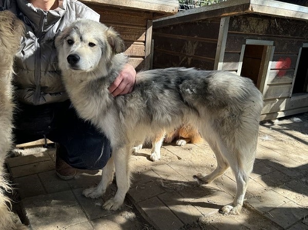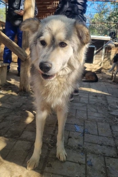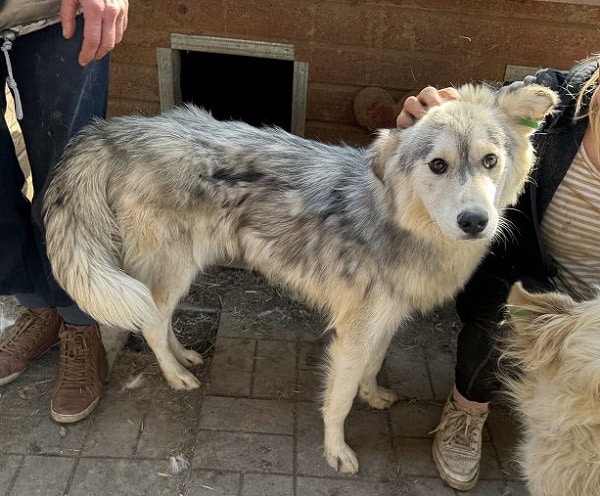 NISHI ist eine wunderschöne, 52cm große Hündin, die noch recht neu im Tierheim ist. Mit ca. 1-2 Jahren hat sie noch ein langes Hundeleben vor sich, welches sie möglichst nicht im stressigen Tierheimalltag verbringen sollte. Sie hat sich, als wir in den Zwinger kamen erstmal zurückgehalten und uns freundlich beobachtet, ist jedoch nicht zurückgeschreckt als wir auf sie zugegangen sind. Nachdem sie merkte, wie schön es ist gestreichelt zu werden, kam sie immer wieder zu uns und hat sich überall anfassen lassen. Optisch ist sie eine absolute Schönheit, die einem Wolf sehr ähnelt. Sie hat längeres helles Fell, mit grauen Schattierungen, welches leider verdeckt, dass sie nur Haut und Knochen ist. Unsere Leckerchen hat sie vorsichtig angenommen ohne zu fordern oder jemanden anzuspringen. Auch in ihrer Zwingergruppe zeigt sie sich total verträglich, geht jeglichem Ärger aus dem Weg und scheint dort, wenn überhaupt als letzte ans Futter zukommen. NISHI hat ganz viel Potenzial eine treue Begleiterin zu werden, die einfach gefallen möchte und mit der man jede Menge Spaß haben wird. Hoffentlich findet sie ihre Menschen, die ihr die schöne Seite der Welt zeigen. Sie hätte es definitiv verdient. Da sie viel zu dünn ist, sollte sie dringend ausreisen.