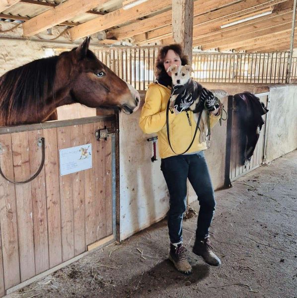 Jeden Tag sind wir mit dem Auto unterwegs und ich sitze ruhig und brav auf der Rücksitzbank. Dauert es bei meiner Pflegemama etwas länger, halte ich einfach kurz ein Nickerchen. Das Geschirr an- und ausziehen und an der Leine laufen mache ich schon ganz souverän und freue mich über gemeinsame Ausflüge. Überhaupt bin ich sehr gerne in der Nähe meiner Pflegemama, begleite sie durchs Haus, auch Treppen sind da kein Problem. Manchmal liege ich auch einfach still auf einer Decke und beobachte sie. Ich spiele dann auch mal gerne allein, um mir die Zeit zu vertreiben. Nachts schlafe ich schon durch und bin eine Musterschülerin in Sachen Stubenreinheit. Eine angemessene Zeit bleibe ich auch schon alleine Zuhause. Wenn Besuch kommt, freue ich mich sehr und lasse mich sehr gerne streicheln und verteile sanfte Hundeküsschen. Alltagsgeräusche Drinnen und Draußen begegne ich mit Neugier, nur große,bellende Hunde finde ich sehr gruselig. Da mein Pflegefrauchen mich jeden Tag mit an den Stall nimmt, habe ich auch die riesigen Pferde schon kennengelernt, ihnen begegne ihnen mit Respekt aber ohne Angst