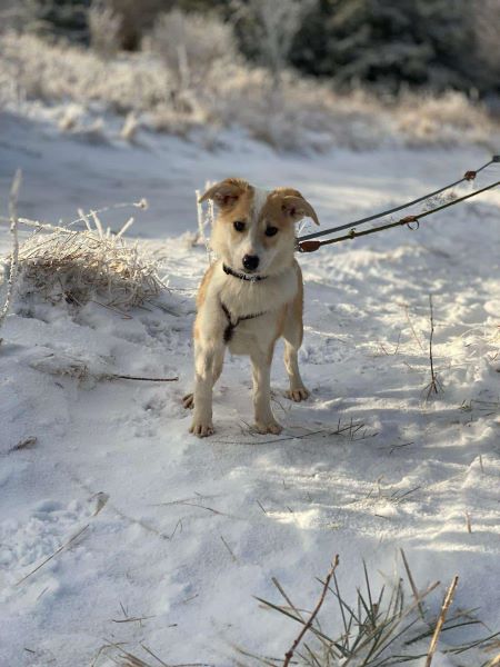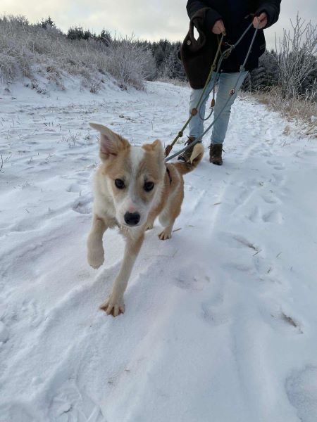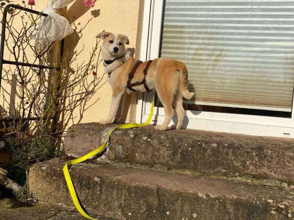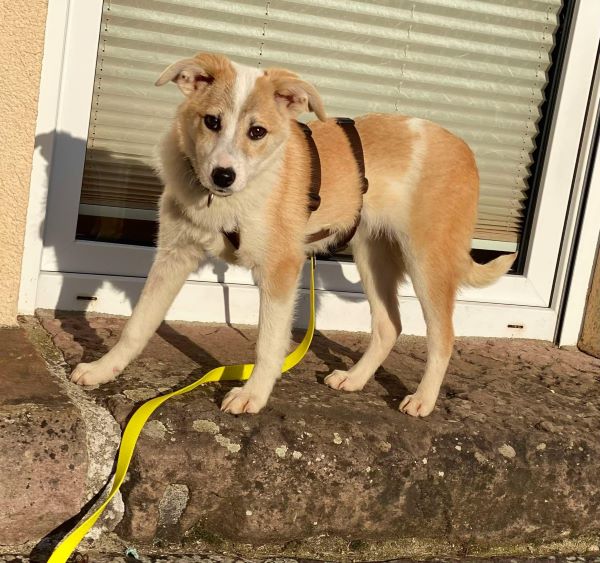 Seit Anfang Januar lebe ich auf meiner Pflegestelle in der Rhön bei meiner Pflegemutti und dem Hausrüden Sam. Ich bin ein sehr zartes, graziles ,Mädchen mit langen Beinen, meine Pflegemama sagt “ wie ein Elfe“. Bin gerade mal 5 Monaten bin ich noch ein Welpe. Meinen Charakter beschreibt sie wie folgt: Neugierig, sehr freundlich, sehr verschmust, fröhlich und verspielt. In der Kommunikation mit Mensch und Tier sehr fein und respektvoll. Vom Wesen her, sanft und ruhig. Vorsichtig jedoch nicht ängstlich gehe ich auf leisen Pfoten durch die Welt, gerne beobachte ich meine Umgebung und untersuche neugierig all die unbekannten Dinge um mich herum. Ich liebe es spazieren zu gehen, zu hüpfen und zu rennen. Mit kleineren Hunden spiele ich sehr gerne, meinen großen Bruder Sam begegne ich respektvoll. Er würde auch mit mir spielen, aber so groß und erwachsen wie er ist , traue ich mich noch nicht so richtig.