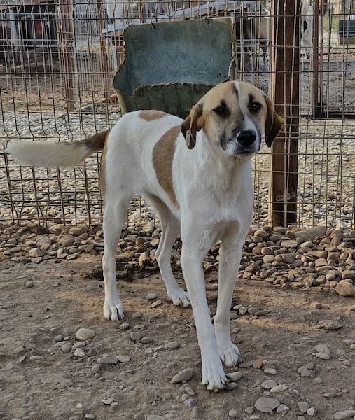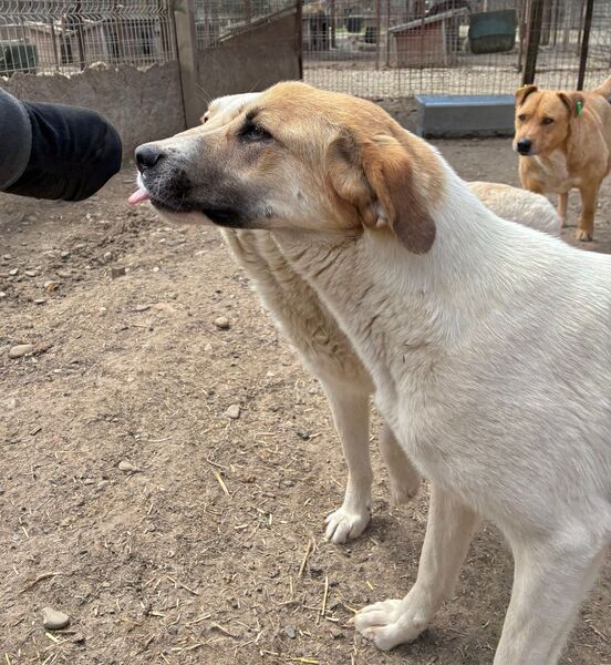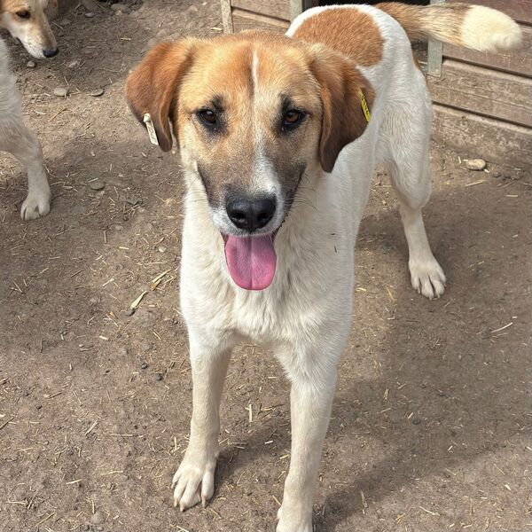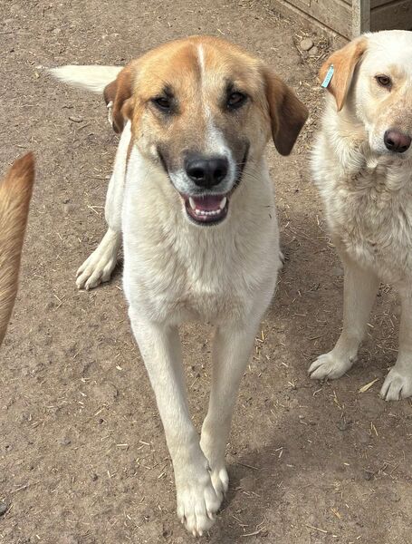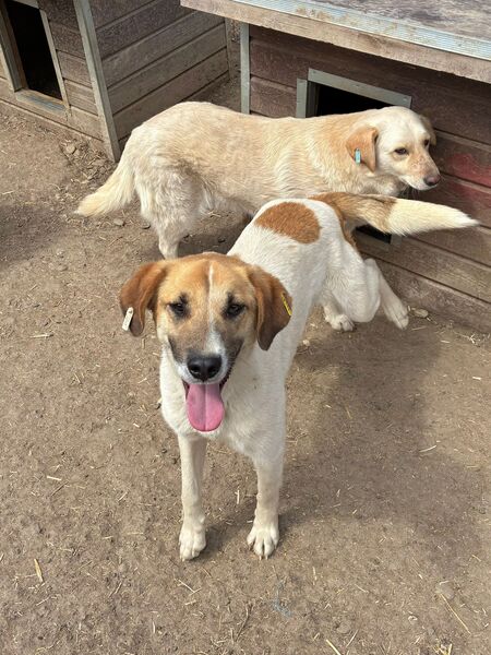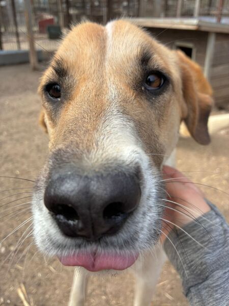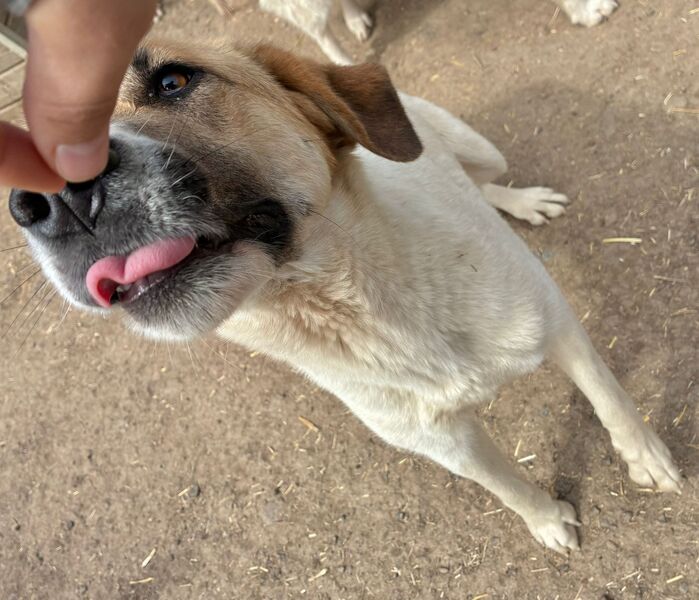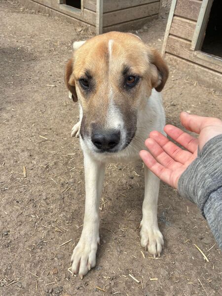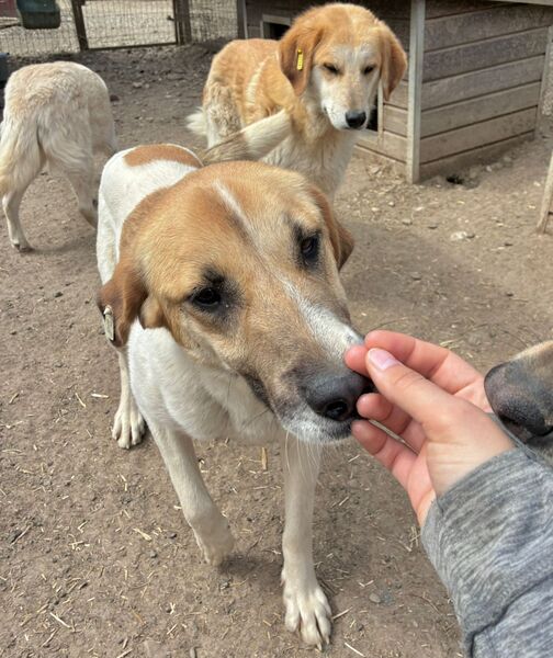 Die zuckersüße NIVES zeigte sich bei unserem Besuch freundlich aufgeregt und gleichzeitig vorsichtig zurückhaltend. Sie war deutlich neugierig und es schien, als würde sie sich wirklich über unseren Besuch freuen – auch wenn sie dabei noch etwas unsicher war. Dennoch hielt NIVES sich die ganze Zeit über in unserer Nähe auf, beobachtete uns interessiert und fasste schnell genug Vertrauen, um die angebotenen Leckerlie gerne direkt aus der Hand zu nehmen und sich dabei behutsam an der Schnute anfassen zu lassen. NIVES macht kleine, aber wichtige Fortschritte und zeigt, dass in ihr eine feine, aufgeschlossene Hündin steckt, die bereit ist, sich weiterzuentwickeln – mit Menschen an ihrer Seite, die ihr Zeit und Geduld schenken. Von einem freundlichen und aufgeschlossenen Ersthund könnte NIVES sich prima abschauen, dass man uns Menschen vertrauen kann. In ihrem gemischten Rudel zeigte die Liebe Hündin sich durchgehend verträglich.