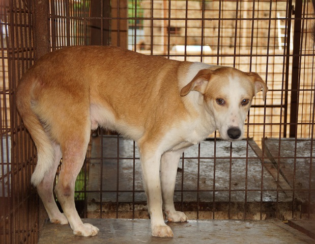 NOEL lebt seit Welpe an im Tierheim und dort mit seinen Brüdern in einem sehr kleinen Zwinger, weil kein größerer Zwinger mehr frei ist.