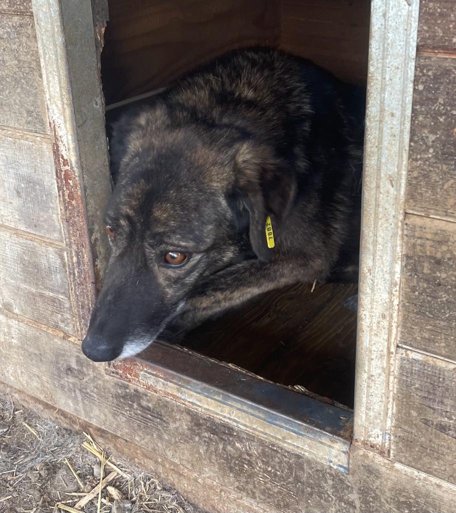 NOLA zeigte sich bei unserem Besuch neugierig und holte sich gerne Leckerlies aus der Hand ab. Wegen eines anderen Hundes im Kennel konnten wir uns ihr diesmal nicht bis zur Hütte annähern und NOLA daher diesmal auch nicht streicheln.