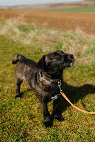 Im Freien und wenn rund herum genügend Platz ist, sucht Nook gerne den Kontakt zum Menschen. Natürlich möchte er dabei trotzdem nicht berührt werden oder zu viel Aufmerksamkeit bekommen. Einfach mit dabei sein zu dürfen und Freiraum zu haben findet er super. Beim Spaziergang und im Freilauf zeigt sich der kleine Rüde sehr angenehm und unkompliziert. Er läuft absolut unauffällig an lockerer Leine und kommt im Freilauf zuverlässig zurück. Gesichert ist er dabei über eine leichte Hausleine, sodass man nicht gezwungen ist ihm zu nahe kommen zu müssen. Für Menschen, die bereit sind, sich auf die Bedürfnisse von Nook einzustellen und akzeptieren können, dass er kein Kuschelhund ist, seinen Freiraum braucht, die bekommen einen lustigen und freundlichen Partner.