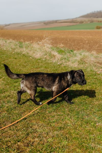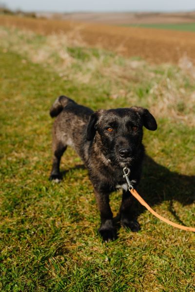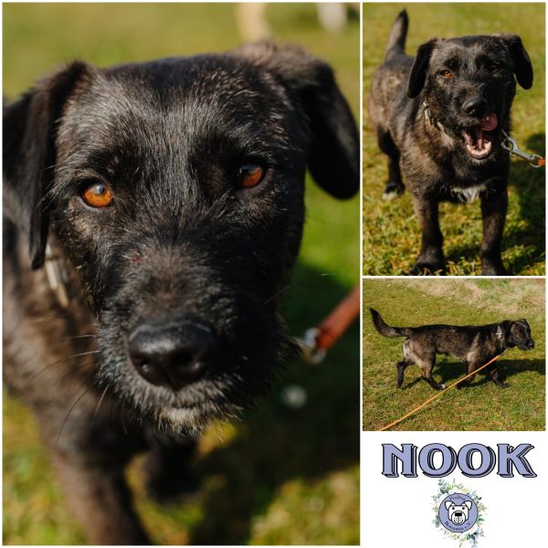 Nook, bei uns Dachs genannt, gehört zu Hunden, die nicht gern im Mittelpunkt stehen. Dem Menschen gegenüber zeigt er sich noch zurückhaltend und sucht von sich aus keinen aktiven Kontakt. Er möchte so verhindern, dass man ihn anleinen kann, denn aus dieser Situation entzieht er sich gerne. Die Lösung ist bei uns, das er eine Hausleine trägt. Das entspannt die Situation sehr. Direkter körperlicher Kontakt zum Menschen macht ihm aktuell noch große Sorgen und so ist er auch noch ein ganzes Stück davon entfernt das Streicheln als etwas Wohltuendes zu empfinden. Bei Bedrängung weicht er aus soweit er kann, wird es ihm aber zu eng oder er sieht keine Rückzugsmöglichkeit mehr, so zeigt er es, das er es nicht mag. Wir suchen Menschen, die sich davon nicht beeindrucken lassen.