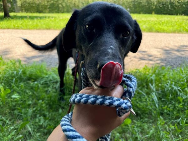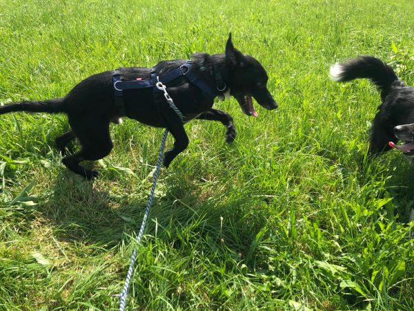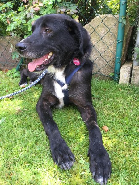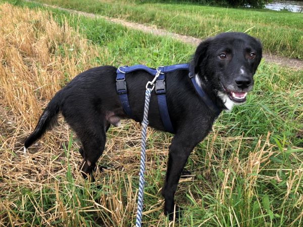 Er kann sowohl Einzelhund als auch Zweithund werden. Kinder gibt es keine auf Norbus Pflegestelle, aber im Park hat er sich schon von Kindern streicheln lassen. Auto fahren ist bis jetzt noch nicht sein Ding, daran üben wir weiter. Norbu kommt im Haus sehr gut zur Ruhe. Er ist zuverlässig stubenrein. Norbu ist bestens für Langschläfer geeignet. 11 Stunden Nachtruhe sind für ihn gar kein Thema. Norbu hat bisher nur ganz selten gebellt. In der Regel in Situationen, in denen er eine hohe innere Anspannung hat, zum Beispiel wenn Pflegefrauchen über einen Bach hüpft, er so gerne hinterher möchte, aber sich erstmal nicht traut. Alleine bleiben – bisher bis zu 3 Stunden – hat bis jetzt immer hervorragend geklappt. Damit das auch im Für-immer-Zuhause so bleibt, sollte von Beginn an Abgrenzung geübt werden. Norbu hat, seit er auf seiner Pflegestelle ist, überhaupt nichts kaputt gemacht. Er ist damit der allererste Hund hier, der sich das auf seine Fahne schreiben kann. Wer Norbus Herz erobert hat, wird einen treuen Begleiter an seiner Seite haben. Da er sich sehr an seinen Menschen bindet, wäre es wichtig, dass zukünftiges Frauchen und/oder Herrchen sich die Zeit nimmt, Norbu einige Male im Voraus zu besuchen und Zeit mit ihm zu verbringen, ihn zu füttern und beim Gassi gehen zu begleiten, damit der Umzug von Pflegestelle ins Für-immer-Zuhause einfach für ihn wird. Wünschenswert wäre für Norbu aufgrund seiner Größe ein Zuhause im Erdgeschoss, am besten mit Garten. Da Autofahren nicht gerade sein Hobby ist, wäre es außerdem schön, wenn Norbu direkt von der Haustüre weg Gassi gehen kann, und nicht jeden Tag Auto fahren muss. Wer entdeckt dieses schwarze Juwel und gibt Norbu ein Zuhause?