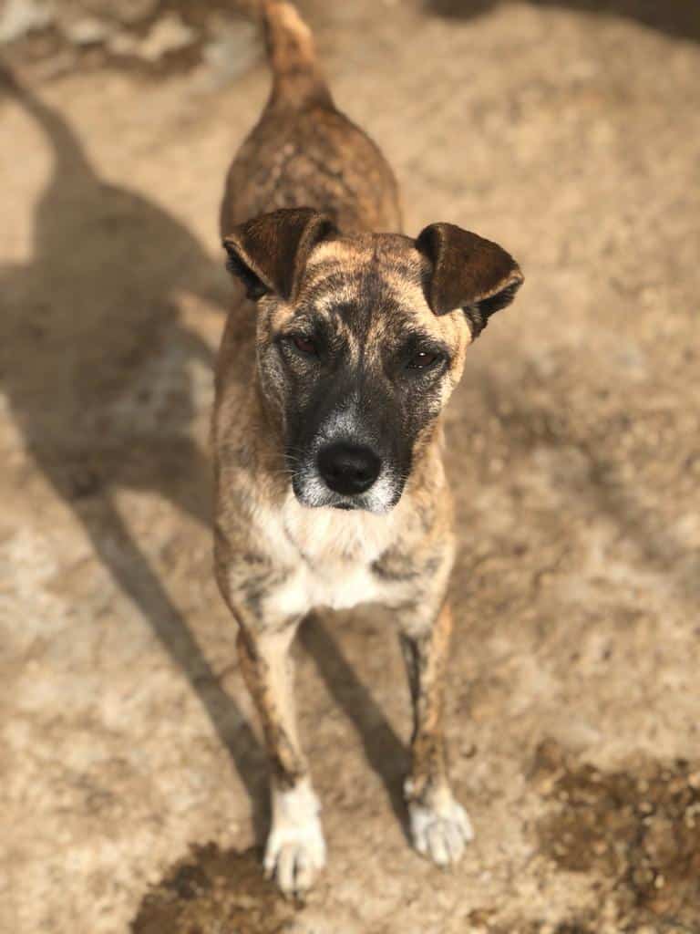Update 04/24: Die hübsche Noreia zeigt sich bei unserem Besuch zutraulich, gut anfassbar und sehr verträglich. Sie genießt die Ohrenmassage der Volontäre. Auch diese freundliche Hündin, wartet bereits über ein Jahr darauf, eine Chance für ein besseres Leben zu bekommen.