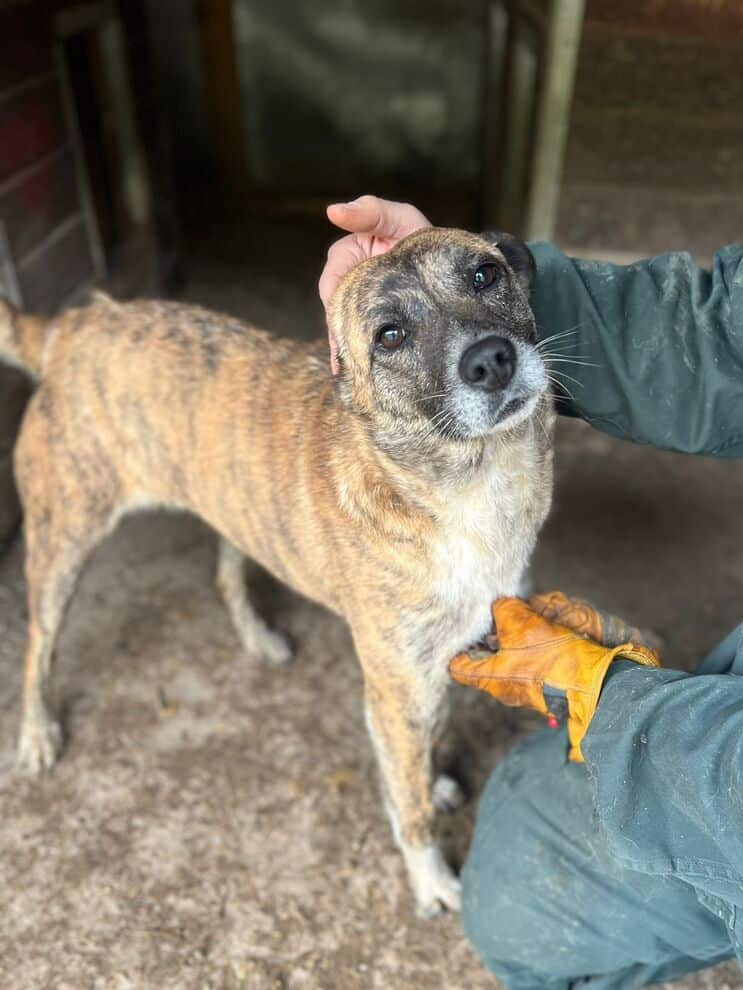 Update 10/23: Noreia hat sich ganz toll entwickelt. Sie lebt nun mit anderen Hunden ähnlicher Statur und Größe in einem Außenkennel. Dort zeigte sie sich von Anfang an sehr zutraulich und lässt sich auch gerne streicheln. Die schreckliche Zeit im VetHouse liegt hinter ihr. Sie ist sehr verträglich, jedoch sollten andere Hunde ihr ebenbürtig sein oder der Mensch etwas von Hundemanagement verstehen. Dann klappt das prima, denn sie liebt den Menschen und ist gerne mit anderen Hunden zusammen. Könnte aber auch als Einzelhund vermittelt werden, weil sie bereits so zugänglich ist. Nun fehlt nur noch die richtige Familie für diese tolle Hündin, die sicherlich für verschiedene Freitzeitaktivitäten zu gewinnen wäre.