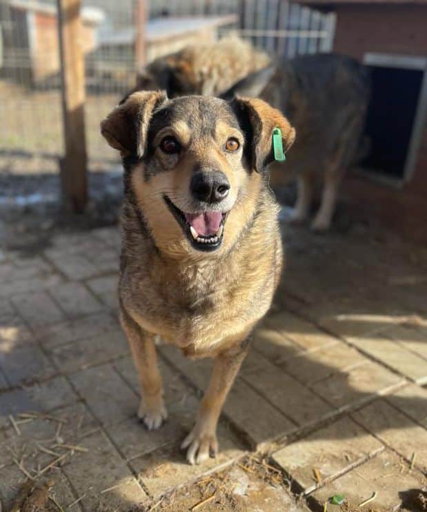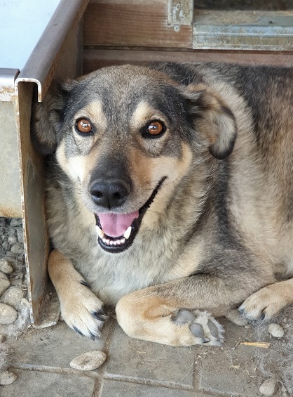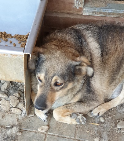 Er freute sich unheimlich, als wir ihn besucht haben. Trotz der Hitze und seiner körperlichen Einschränkung kam er sofort zu uns und tänzelte er vor uns her, nahm gerne unsere mitgebrachten Leckerlis aus der Hand. Er ließ sich bedingt am Kopf anfassen, kann das aber nicht genießen und reagierte dann auch mit einem Wegschnappen, ohne wirklich beißen zu wollen. Er ist ein freundlicher Hund, der einfach misstrauisch wird, wenn man ihn bedrängt.