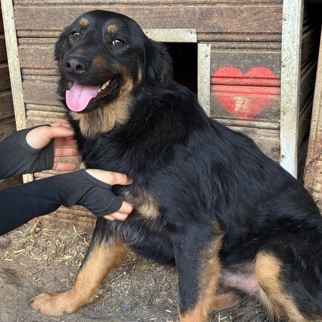 Der wunderschöne NORI hat sich zu einem ganz bezaubernden jungen Rüden entwickelt. Er hielt sich zunächst im Hintergrund und wartete, bis er an der Reihe war. Als wir uns ihm zuwandten, freute er sich sehr und zeigte sich von der ersten Sekunde an total zutraulich. Er ließ er sich überall streicheln und bat ganz rührend mit seiner Pfote um mehr Zuwendung, ohne dabei zu aufdringlich zu sein. Sanft schnupperte er an unseren Gesichtern und verteilte liebevolle Küsschen. NORI hielt sich vermehrt in den sicheren Hütten auf und bewegte sich eher gehemmt freilaufend im Kennel – dies liegt vermutlich an den dominanteren und etablierteren Hunden dort, denn er lebt erst seit kurzem in dieser Gruppe. Mit dieser zeigte NORI sich dennoch verträglich. Ein rundum toller, junger Hund, der hoffentlich schon bald seine Chance erhält und der treue Begleiter werden darf, der in ihm steckt.