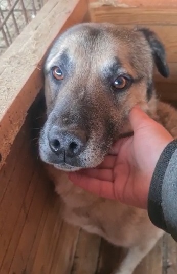 NORRIS lebt nun in einem Kennel mit einem großen Rüden zusammen. Anfangs hat er uns interessiert aus der Hütte beobachtet. Nachdem wir NORRIS aus der Hütte rausgelockt haben, konnten wir ihr ihn streicheln, was er aber noch nicht so richtig genießen konnte.
