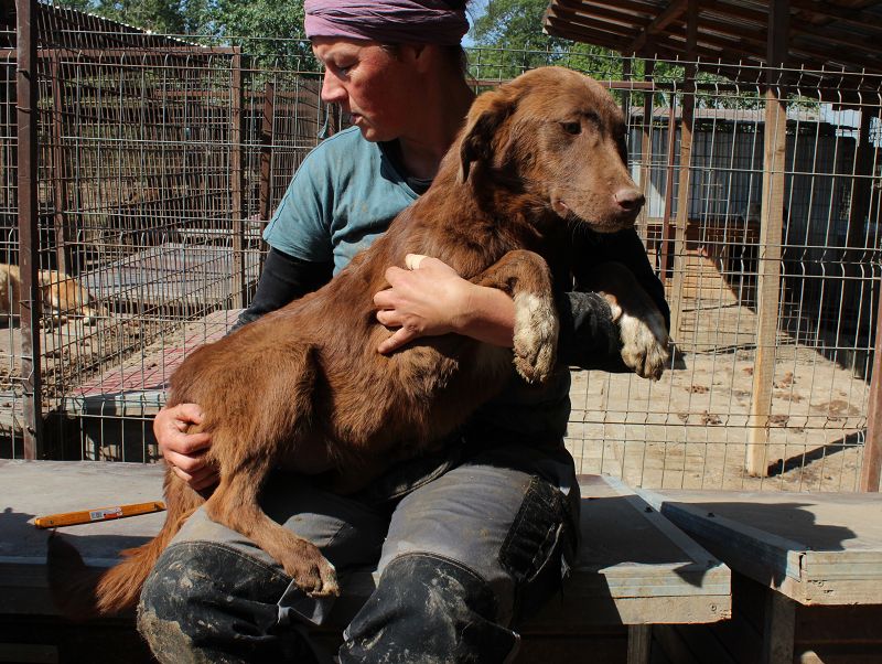 Später bemerkten wir aus einem Zwinger, wie Noshi von einigen der anderen Hunde im Zwinger in eine Ecke getrieben wurde. Noshi war nicht in der Lage sich zu wehren und wir mussten ihm zur Hilfe eilen, denn er war mittlerweile aus Verzweiflung zwischen Gitter und Hundehütte in Sicherheit. Der stressige Tierheimalltag zwischen den rund 5.000 Hunden nimmt ihn immer mehr mit. Wir hoffen, dass ihm jemand bald ein liebevolles Zuhause gibt.