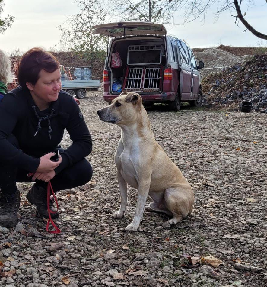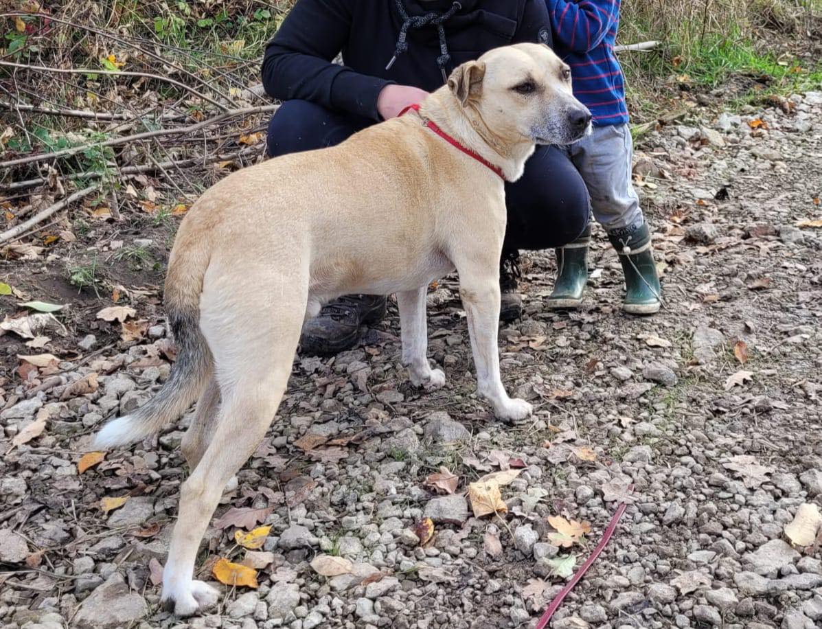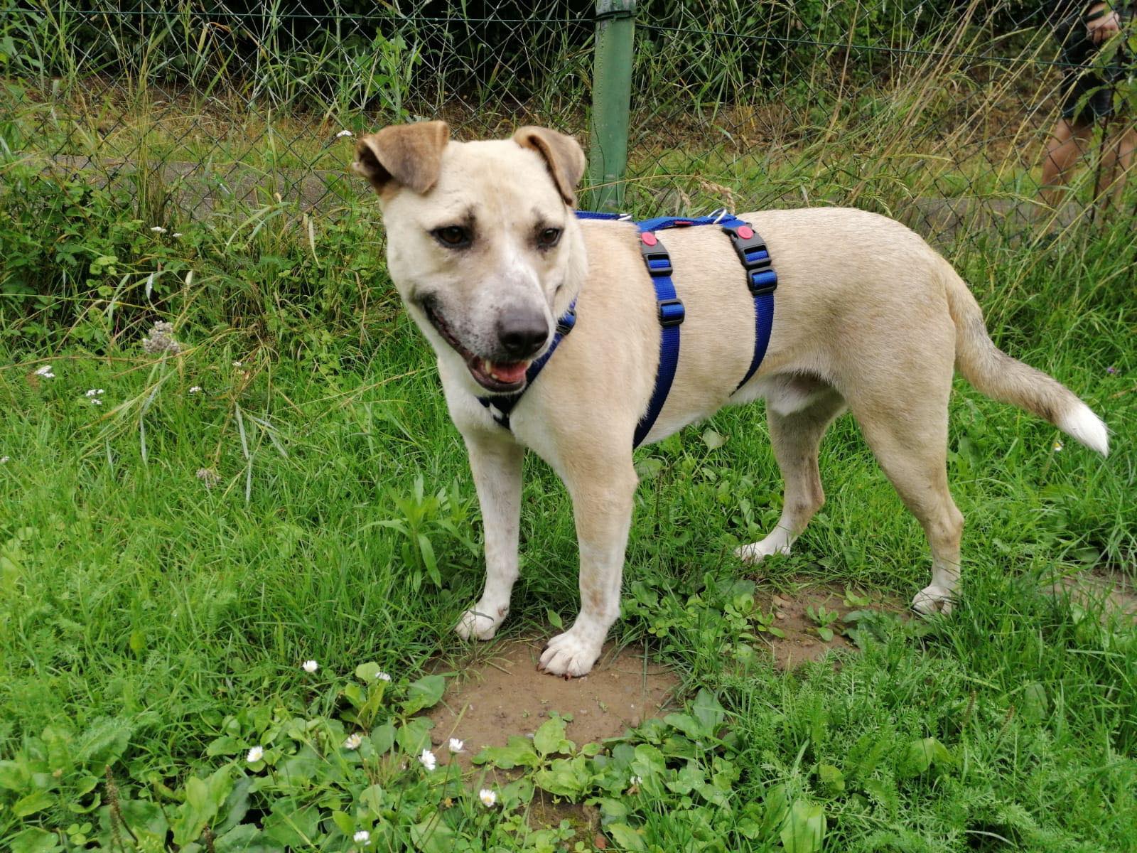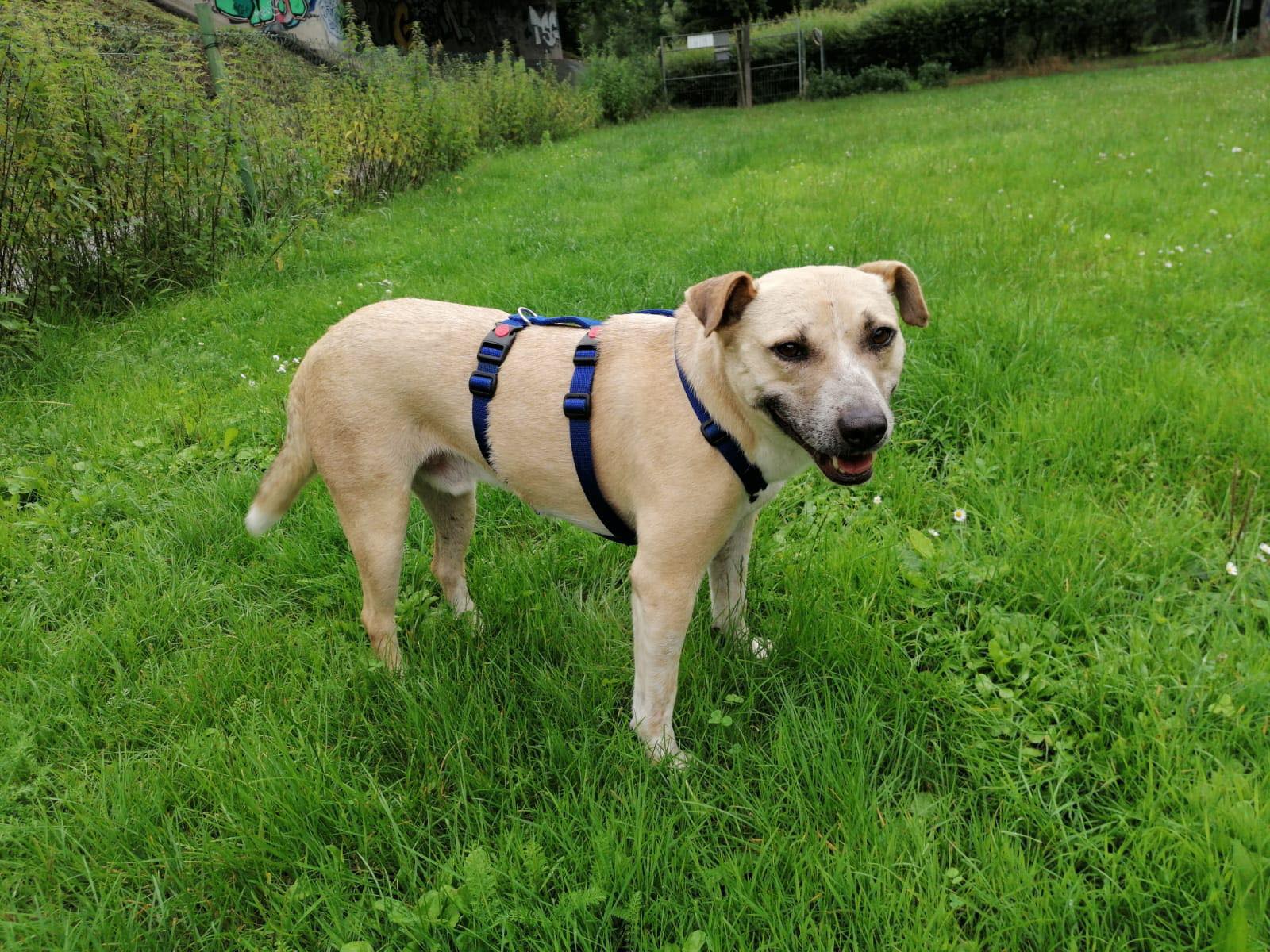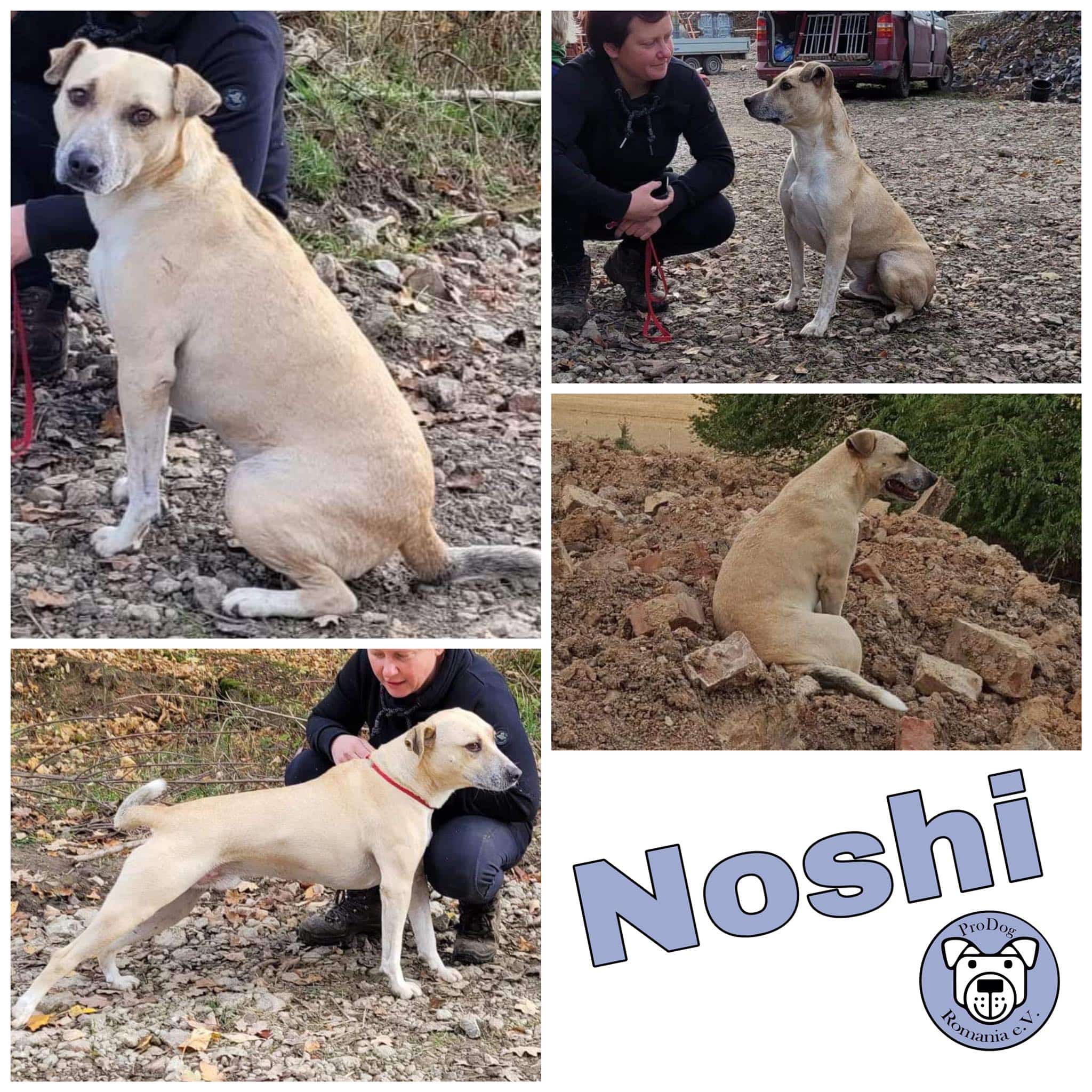 Noshi ist sehr verträglich. Er lebt problemlos in einer großen Hundegruppe. Er kennt auch Ziegen, Schweine, Kühe und Pferde. Alles kein Problem für ihn.