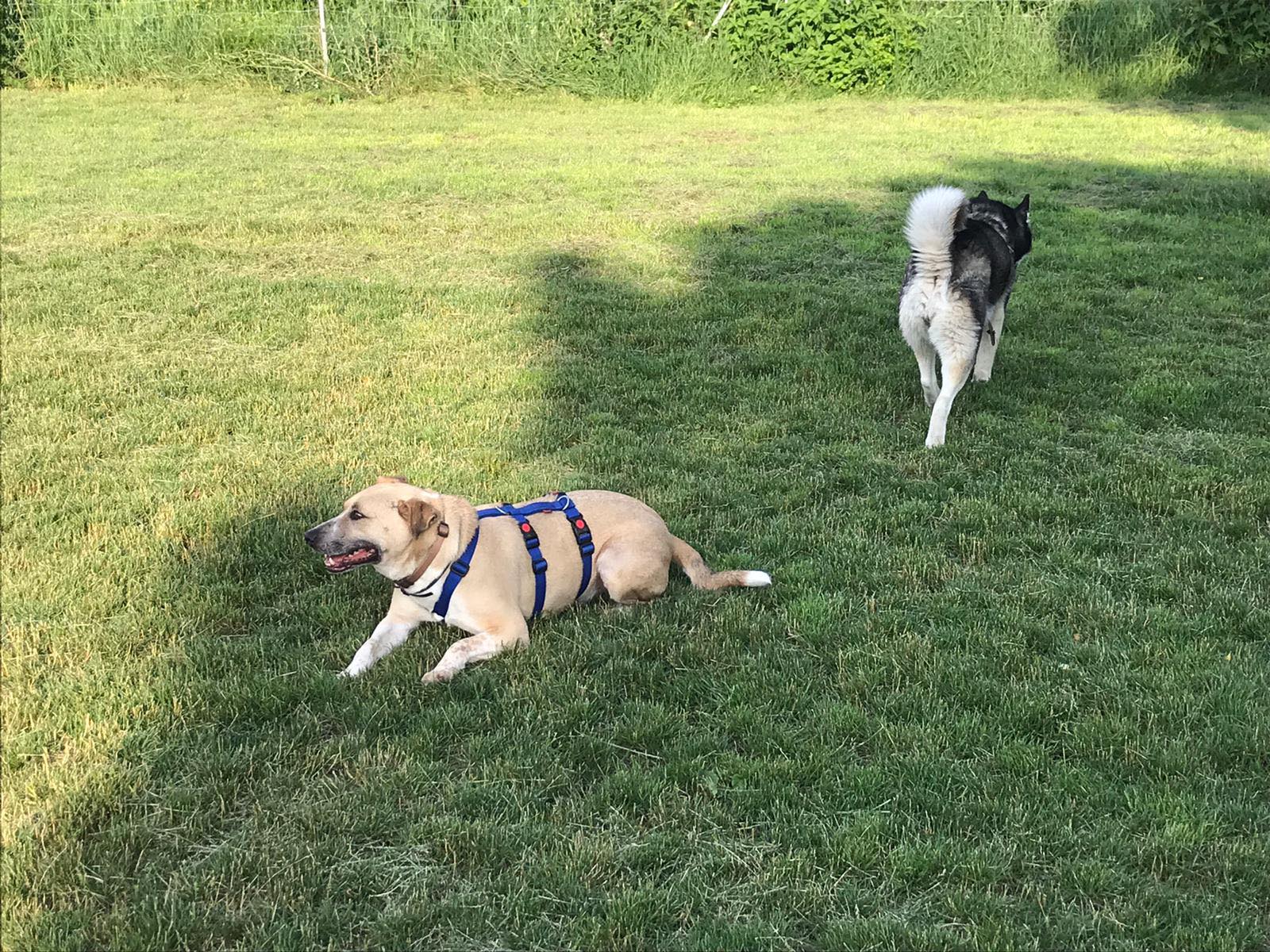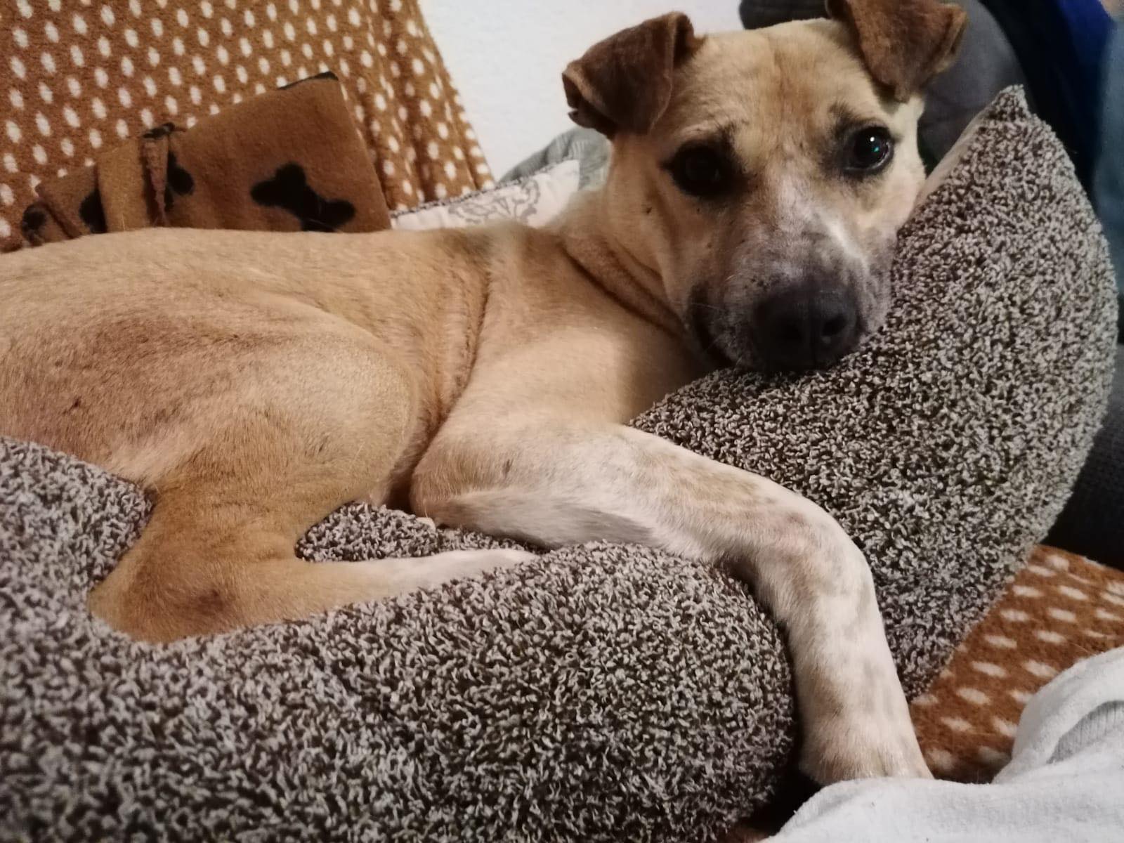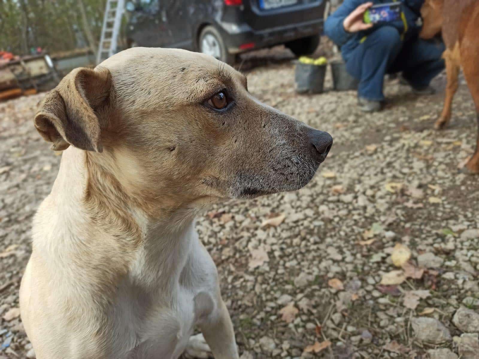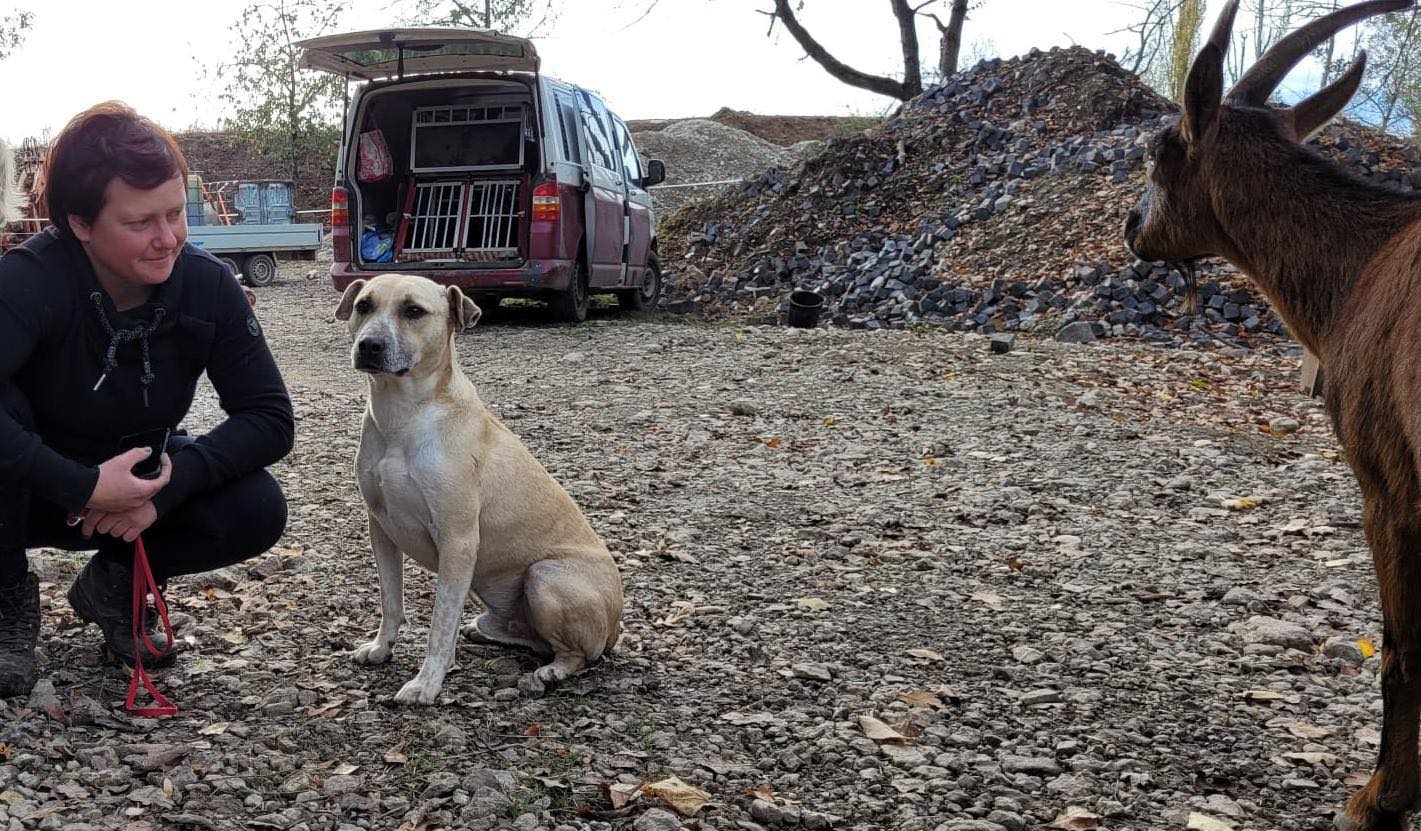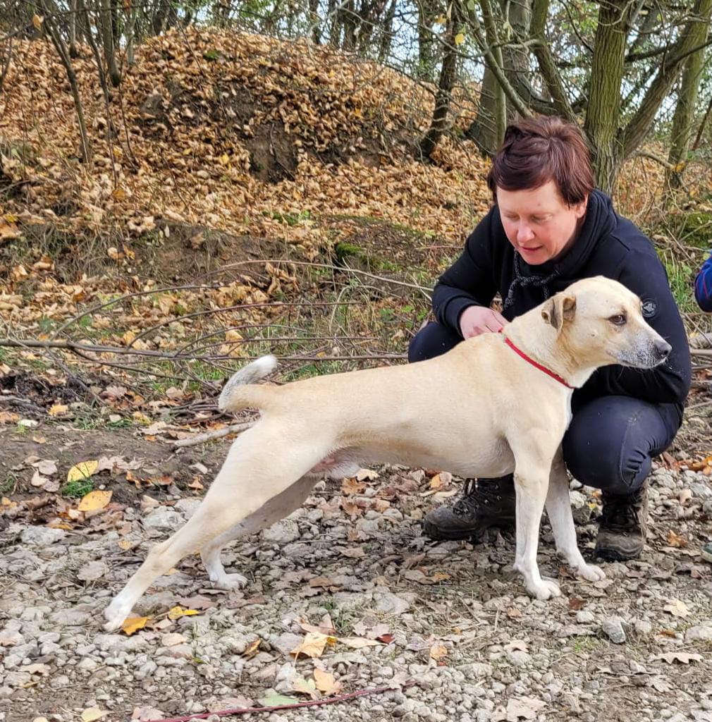 Noshi ist sehr verträglich. Er lebt problemlos in einer großen Hundegruppe. Er kennt auch Ziegen, Schweine, Kühe und Pferde. Alles kein Problem für ihn.