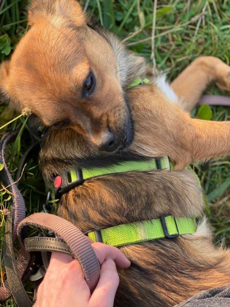 Spazieren gehen findet unsere Hummel ganz toll und ist am Anfang noch aufgeregt, wird aber zunehmend ruhiger und genießt ihre Runde dann in vollen Zügen und geht toll an der Leine. Sie ist eine ganz liebevolle und zuneigungsbedürftige Hündin die zu gern mit ihren Artgenossen spielt und tobt und auch uns Menschen mit Liebesgesten überschüttet. Sicher braucht auch diese kleine Maus noch Struktur im Leben und etwas Zeit zum Ankommen, denn es gibt so vieles, das sie noch nicht kennt. Aber Nui ist offen und wird alles aufsaugen was man ihr zeigt und beibringt. Das allein bleiben bereitet ihr aktuell noch Probleme zu gern möchte sie immer mit . Sie ist toll im Umgang mit anderen Hunden und hat eine augeprägte Spielader. Sie wäre ganz sicher ein prima Erst-oder Zweithund. Wer hat Lust unserer Nui die Welt zu zeigen und ihr einen sicheren Hafen zu geben, in dem sie ankommen darf? Gerade mal ca. 25 cm gross ist der süße Feger und knapp 7 kg schwer . Zu dem Umgang mit Katzen oder anderen Kleintieren kann keine Aussage getroffen werden.