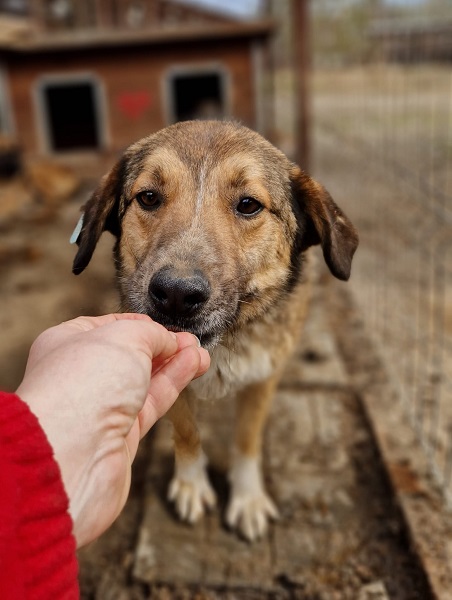 Sie hat uns bei unserem Besuch sehr berührt und zum Lachen gebracht: um ihre Unsicherheit zu überspielen, sprang sie niedlich vor uns umher und machte augenscheinlich Spielaufforderungen. Hin- und hergerissen zwischen ihrer Neugier und Skepsis sah man ihr deutlich an, dass sie sich so gern mehr trauen würde.